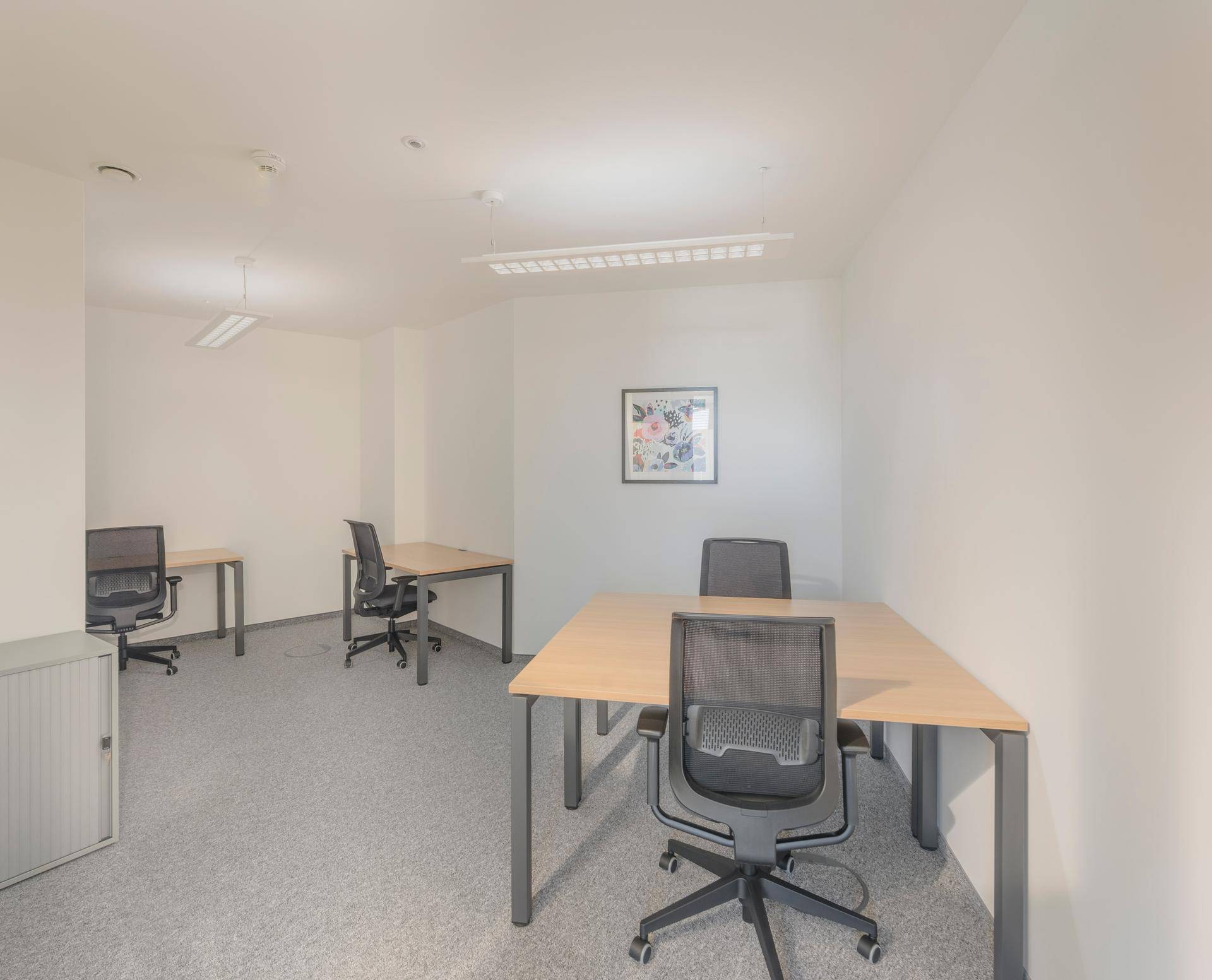 Erhalten Sie Zugang zu einem hellen und inspirierenden Büroraum, der darauf ausgelegt ist, Teams von 5 Personen optimal bei ihrer Arbeit zu unterstützen.