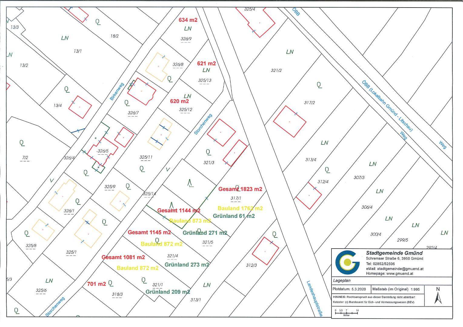 NICHTVERÄNDERUNG DER GRUNDSTÜCKSFLÄCHEN UND - GRENZEN: Die von der Stadtgemeinde Gmünd bei der Parzellierung der Bauplätze im Einzelnen festgelegten Grundstücksgestaltungen und Grundstücksgrößen folgen den Interessen der örtlichen Raumplanung und sind für den Käufer rechtsverbindlich. Eine nachträgliche Änderung der Grundstücksfläche und/oder der Grundstücksgrenzen (Grundstücksvereinigung, Grundstücksteilung, Grenzveränderungen, etc.), auch mit Nachbargrundstücken, durch den Käufer ist für die Dauer von 20 Jahren ab Abschluss des Kaufvertrages unzulässig.