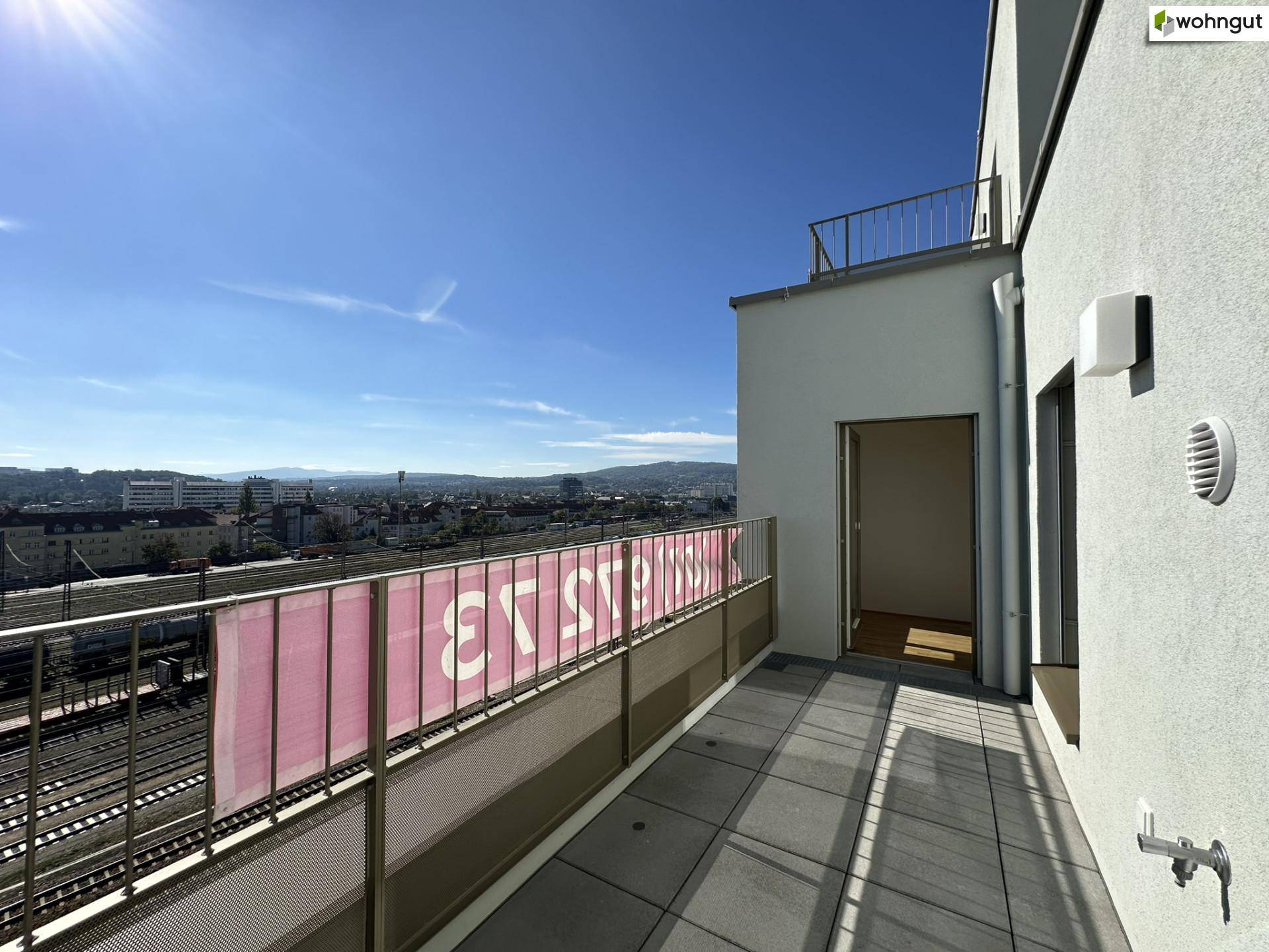 Die sonnige Eigentumswohnung verfügt über eine schöne südliche Terrasse, eine Wohnküche, zwei Schlafzimmer, einen großen Schrankraum, ein Badezimmer mit Badewanne, ein separates WC, einen Vorraum sowie einen praktischen Abstellraum.
