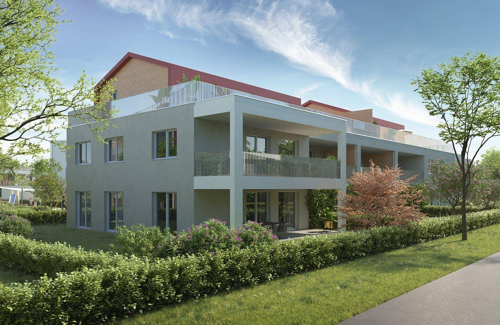 Das gesamte Quartier ist verkehrsberuhigt, dennoch kann das Auto bequem in Wohnungsnähe bzw. unter den Gebäuden geparkt werden. Das hat wiederum einen ökologischen Aspekt, da wir durch diese Maßnahme die Bodenversiegelung minimieren können. Dafür sorgt auch ein Maximum an Begrünung der Außenflächen.