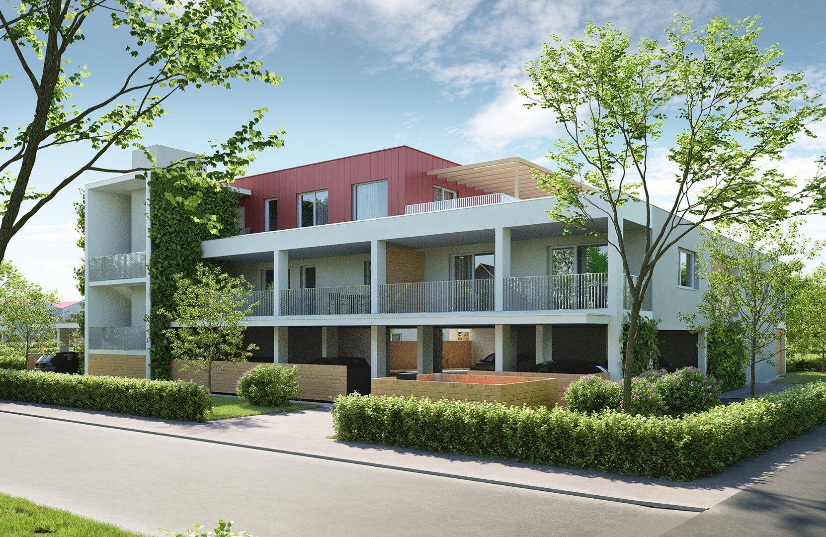 20 Wohneinheiten in schlüsselfertiger Ausführung. Überdachte Autoabstellplätze zu je 14.360 EUR zukaufbar.
