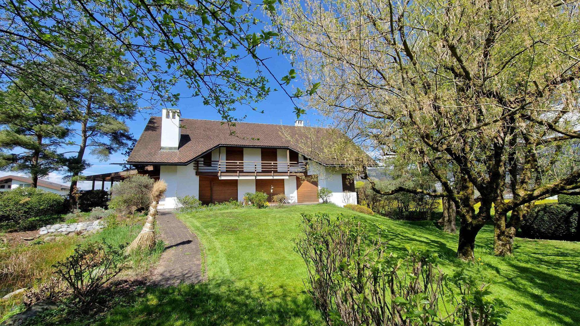 In Frastanz wird in schöner Lage diese repräsentative Villa mit Einliegerwohnung verkauft. Das Haus gewährt durch seine südliche Ausrichtung einen schönen Blick auf die umliegenden Berge.