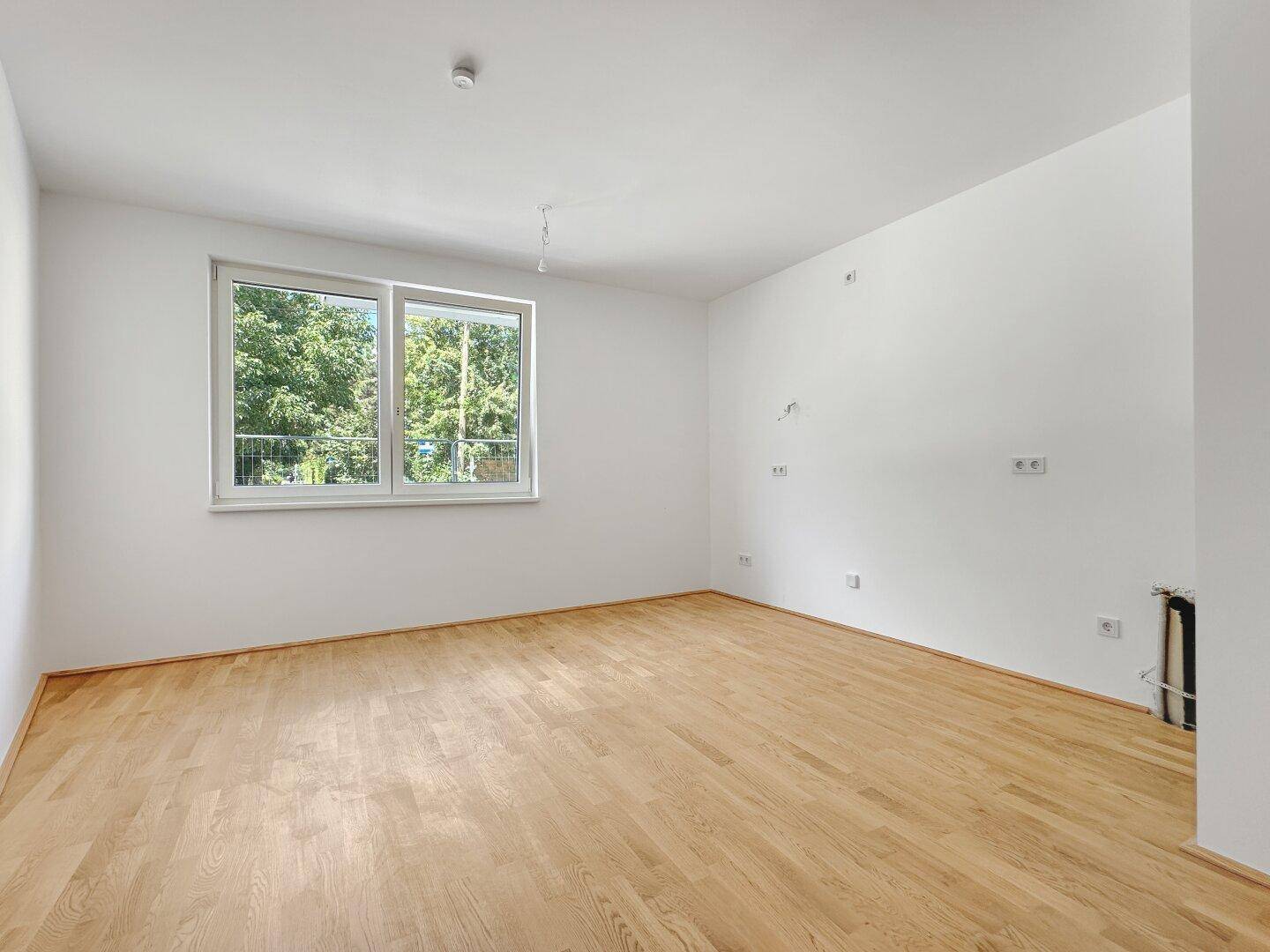 Diese 41,29 m² große Neubauwohnung zeichnet sich durch einen intelligent gestalteten Grundriss aus. Alle Räume sind zentral vom Vorraum aus zugänglich, darunter die Wohnküche, das Schlafzimmer, das separate WC und das Badezimmer. Das Badezimmer ist modern ausgestattet und verfügt über eine Dusche sowie einen Waschmaschinenanschluss. Der großzügige Wohn- und Essbereich mit über 18 m² bietet reichlich Platz für individuelle Gestaltungsmöglichkeiten und ein komfortables Wohnen.