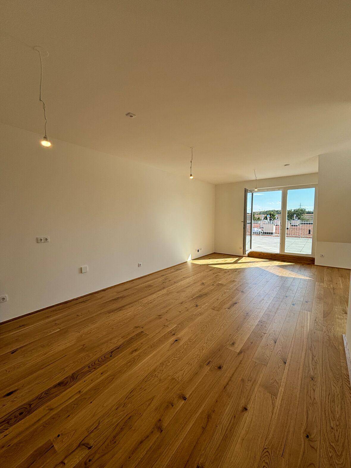 Die Wohnung ist mit hochwertigem Bauwerk Parkettboden in den Wohnräumen, großformatigem Feinsteinzeug im Abstellraum und dem Badezimmer, sowie außenliegendem Sonnenschutz und Fußbodenheizung ausgestattet.