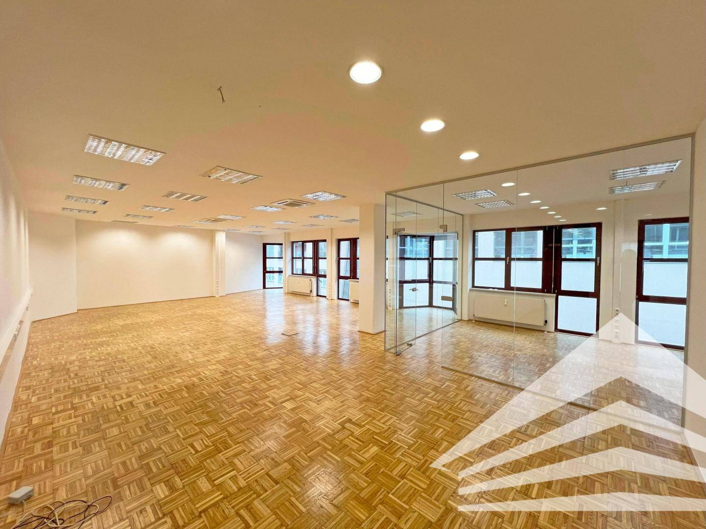 Attraktive Großraumbürofläche mit integriertem Besprechungsraum und offenem Empfangsbereich. Zusätzlich bietet die Einheit ein Einzelbüro sowie getrennte Sanitäranlagen. Im Besprechungsraum besteht die Möglichkeit eine Teeküche einzubauen. Das Objekt ist bereits mit KAT 7 Datenkabeln ausgestattet. Im Keller des Gebäudes kann bei Bedarf eine großzügiger Lagerraum mit ca. 134 m² angemietet werden.