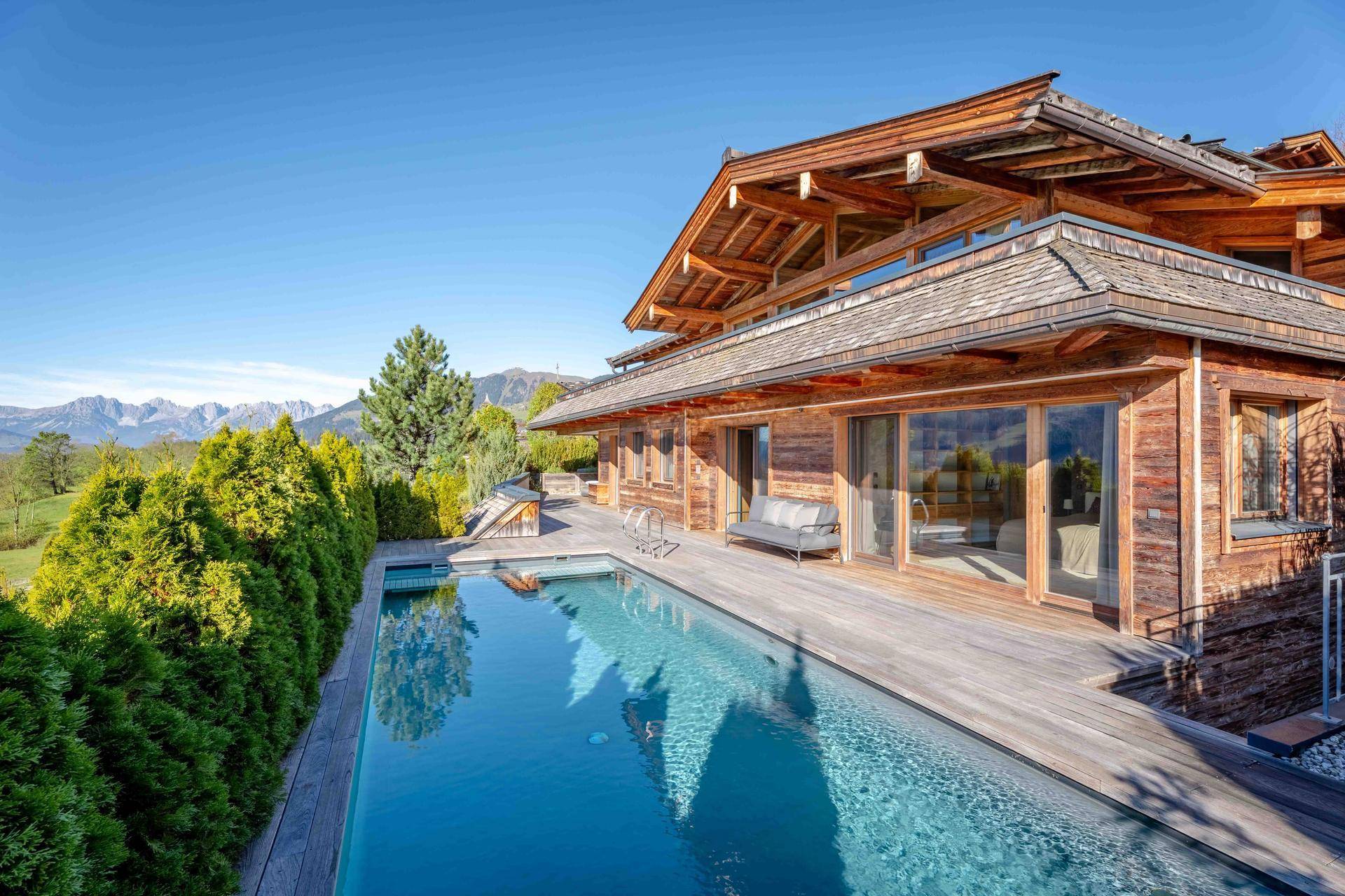 Nur einige Fahrminuten von Kitzbühel entfernt, liegt dieses traumhafte Chalet in einer der exklusivsten Wohngegenden der Region – auf dem sonnigen Hochplateau Kochau. Der Rückzugsort verspricht Erholung und Entspannung, während man einen atemberaubenden Ausblick auf die umliegenden Berge und die grünen Wiesen im Sommer genießt.