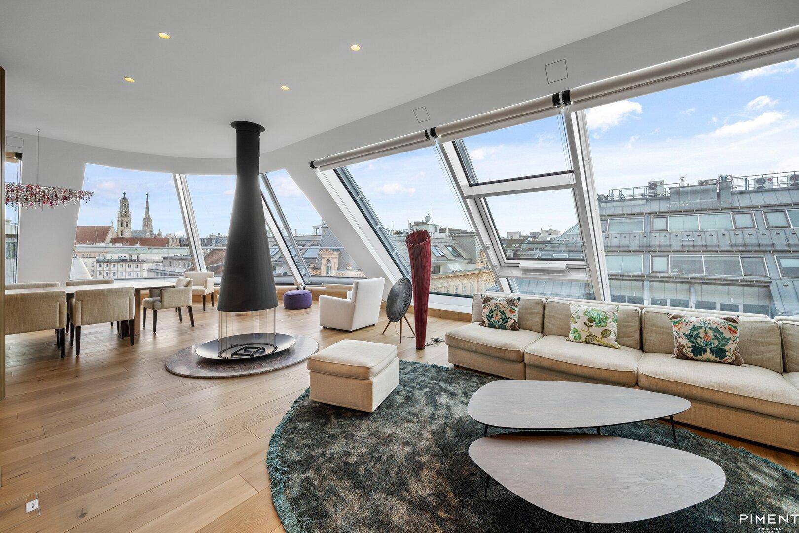 Dieses einzigartige und komplett ausgestattete Penthouse befindet sich in einem imposanten Gründerzeithaus in Mitten des exklusiven historischen Textilviertels der Wiener Innenstadt.