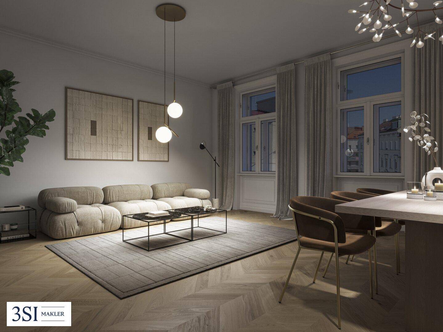 Top 31 · Stiege 2 · 1. ObergeschoßZum Verkauf gelangt eine optimal aufgeteilte 4-Zimmer-Stilaltbauwohnung im 1.Obergeschoß (darunter liegendes Mezzanin) mit einer Größe von ca. 81 m² zzgl. ca. 9 m² Balkon.