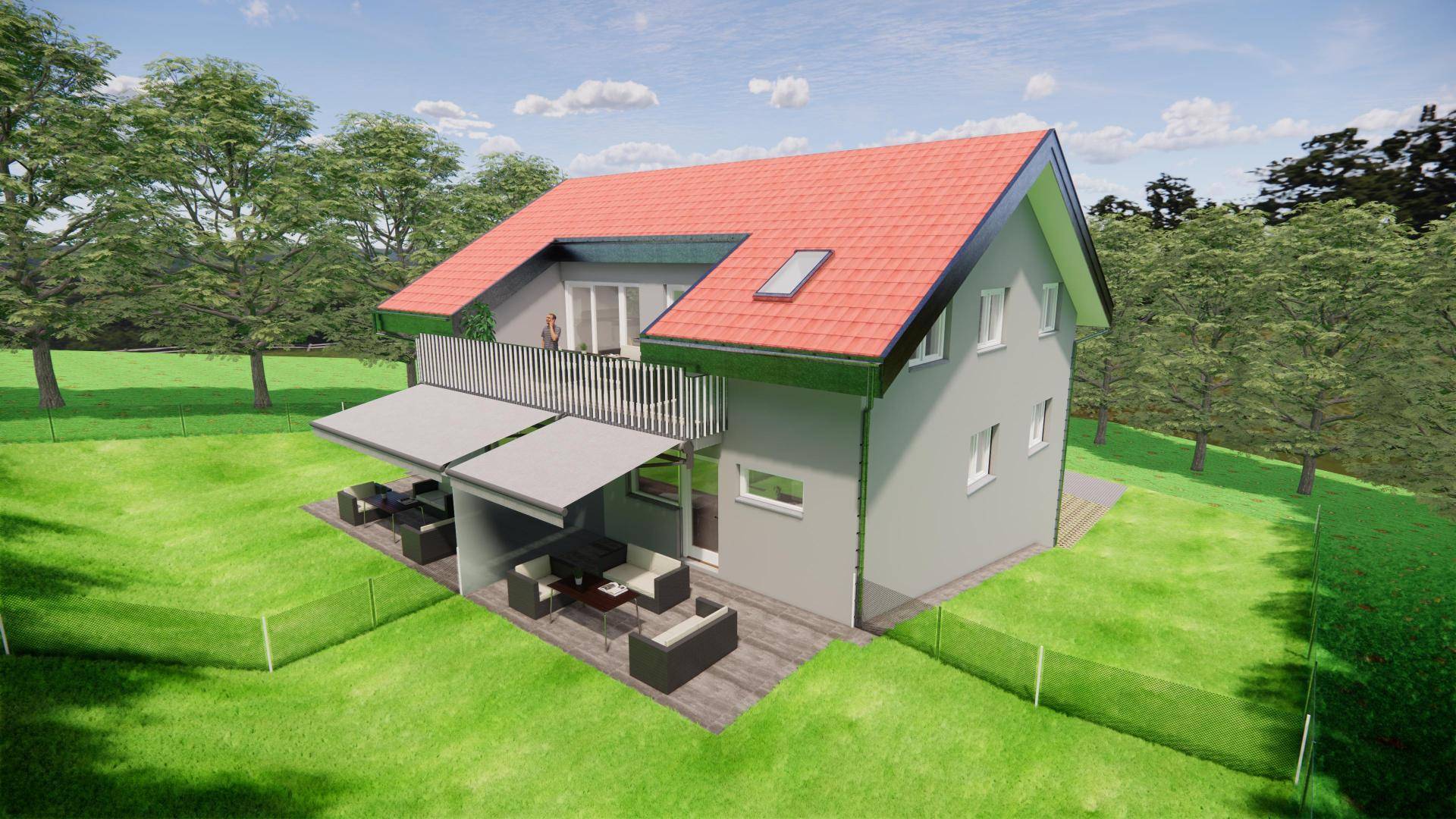 Die Außenanlagen wie Zufahrt, Parkplätze sind befestigt. Stiegenhaus überdacht Geländer Standard mit Sprossen, Ober/Untergurt, Handlauf ACHTUNG LIFT IST NICHT ENTHALTEN (Liftschacht wird mitgemacht) Wendeltreppe vom DG zum Gartenanteil ist Aufpreis Fenster in Kunststoff Schlafräumen Rollo, im Wohnzimmer Raffstore, Insektenschutz Eingangstüren in Alu Innentüren in Holz In den Räumen Fertigparkett 2-schicht Eiche Terrassen und Balkone Feinsteinzeug 2 cm Badezimmer mit 60x30 cm Fliesen inkl. Badausstattung und Sprossenheizkörper Elektroarbeiten Standard Sprechanlage PV Anlage 5,5 Kwp Heizung, momentan LWP geplant, kann sich aber ändern Leerverrohrung zu den 3 Parkplätzen unter dem Haus für E-Tankstelle mit Absicherung im E-Kasten