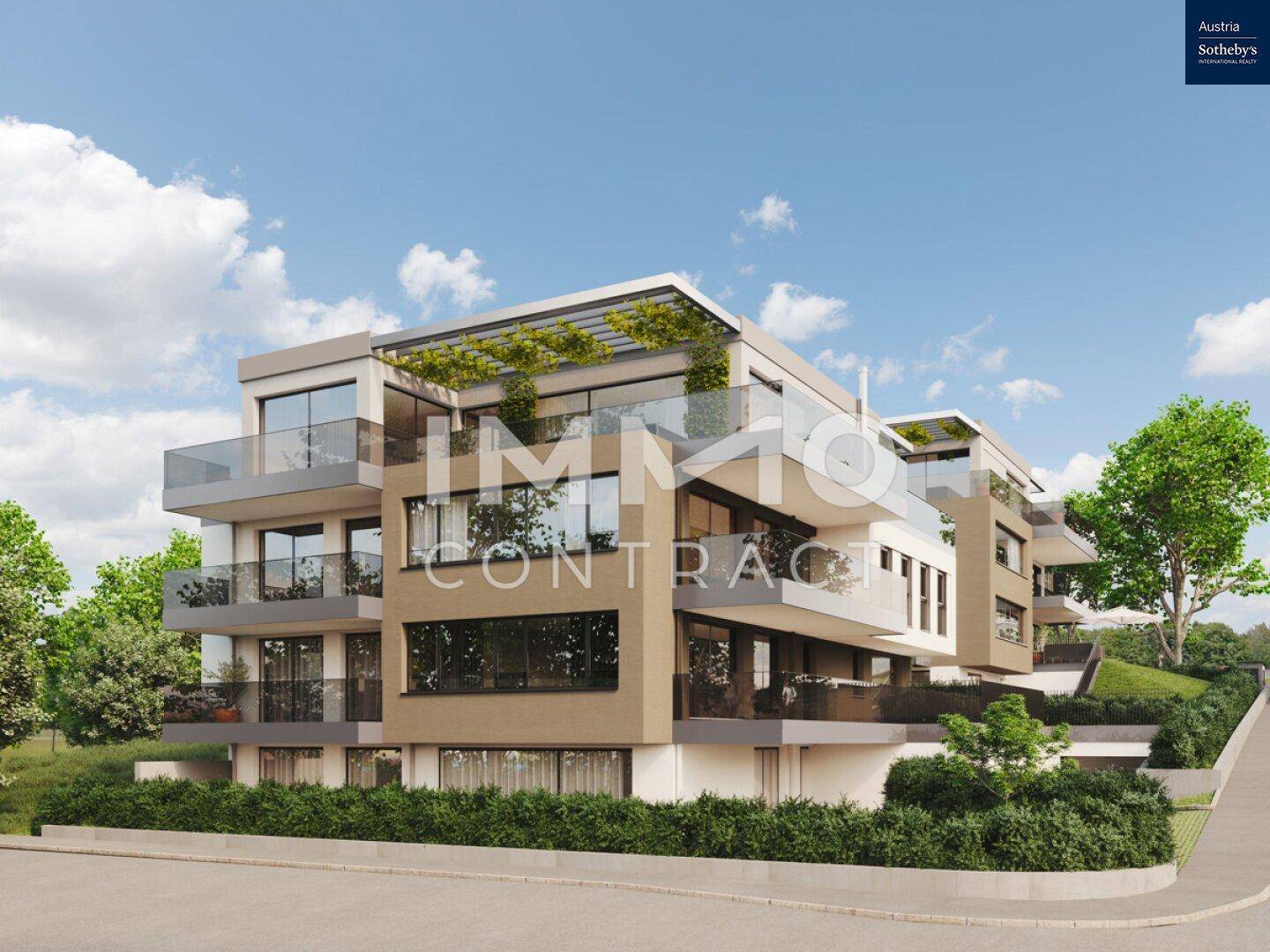 Doch dies ist nicht alles-die Wohnung wird von einer 70 m² Terrasse umrandet und führt Sie noch in einen Garten. An alles wurde gedacht- zwei Tiefgaragenplätze können ebenso zusätzlich erworben werden.
