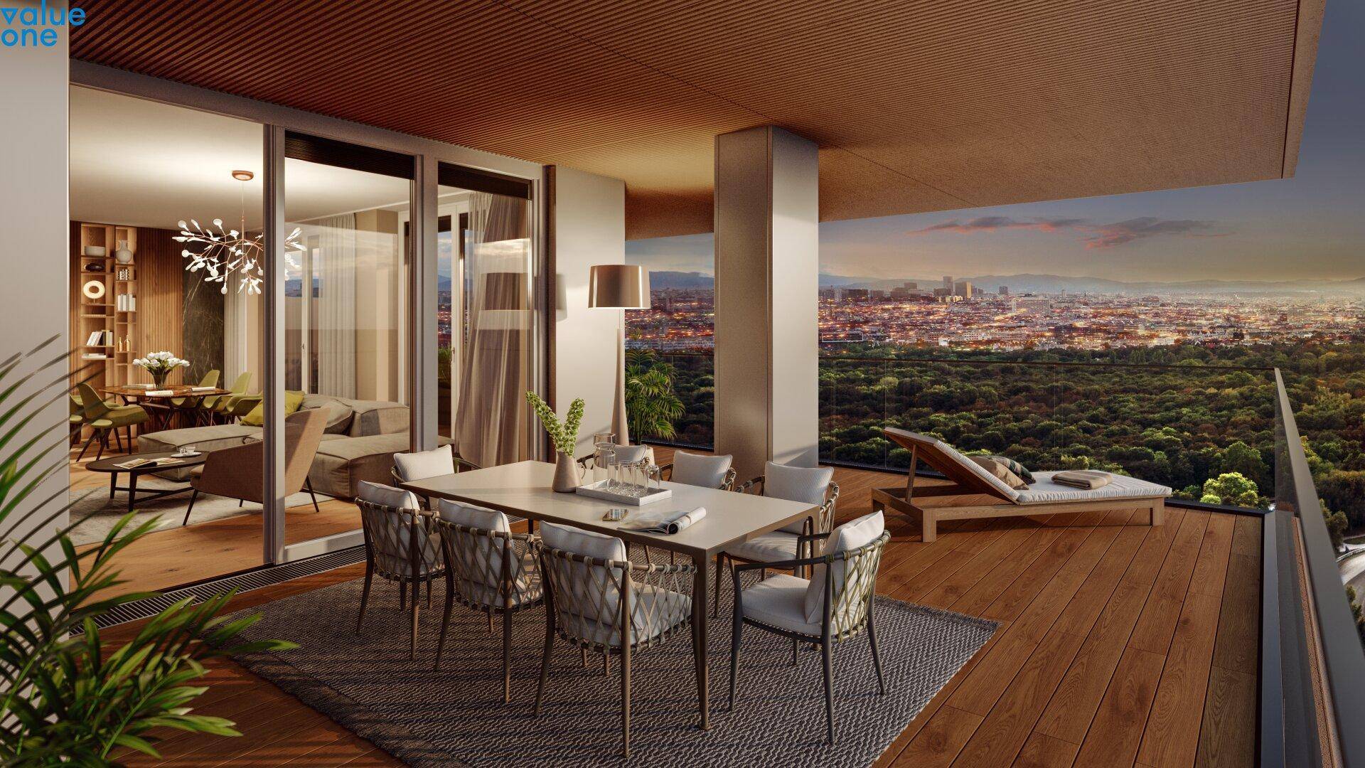 • Dining Area und großzügige Terrassenflächen mit Wienblick