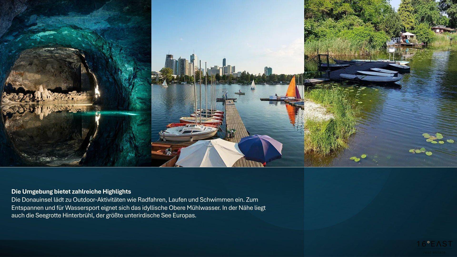 Dieses moderne Wohnprojekt in Wien bietet großzügige private Freiflächen wie Dachterrassen, Gärten und Balkone. Eine hauseigene Tiefgarage und ein Spielplatz für Kinder erhöhen den Komfort.
