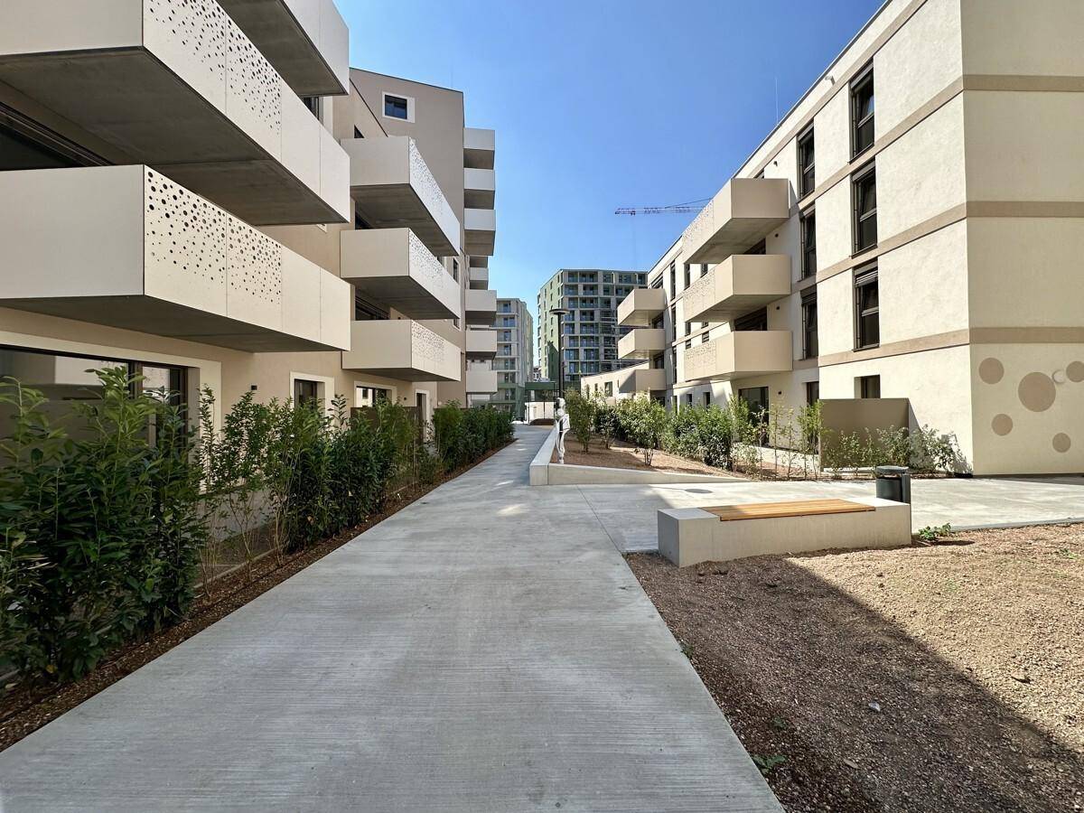 Das autofreie Viertel verfügt über zahlreiche Rad- und Fußwege. Es gibt 94 Tiefgaragenstellplätze, die alle für E-Mobilität vorbereitet sind.