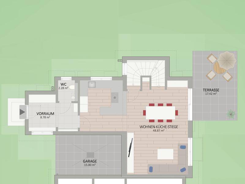 In gemütlich-grüner und dennoch gut angebundener Lage am Zukunftsweg im 21. Bezirk entstehen zwei moderne Häuser als Doppelhaus ausgeführt. Der Standort verbindet perfekt die Vorteile von Natur und Stadt. Die Häuser werden zweigeschossig gebaut und sind voll unterkellert. Es erwarten Sie hochwertig ausgestattete Häuser in moderner Architektur.