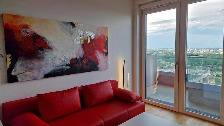 Voll möbliertes und komplett ausgestattetes Business Apartment in Wien. 30. Stock, herrlicher Fernblick, 53m², 30. Etage, mit Lift, 2 Balkone, Gartensitzplatz (zur Mitbenützung), Öffentliche Parkplätze in der Nähe, Autobahneinfahrt in der Nähe. Inkl. Heizung, Strom, Wasser, Internet, TV (inkl. Anschluss und Abo). Energieeffizienzklasse A, Baujahr Gebäude 2023, ...