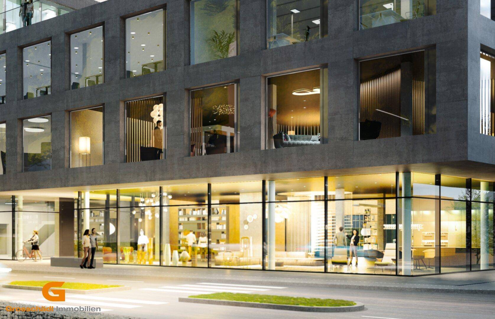 Davon entfallen ca. 192 m² auf Geschäft/Showroomfläche in werbewirksamer Lage. Auf Grund der großen zugehörigen Terrasse ca. 57 m² eignet sich diese Einheit auch sehr gut als Gastrofläche für ein Kaffee/Bistro.