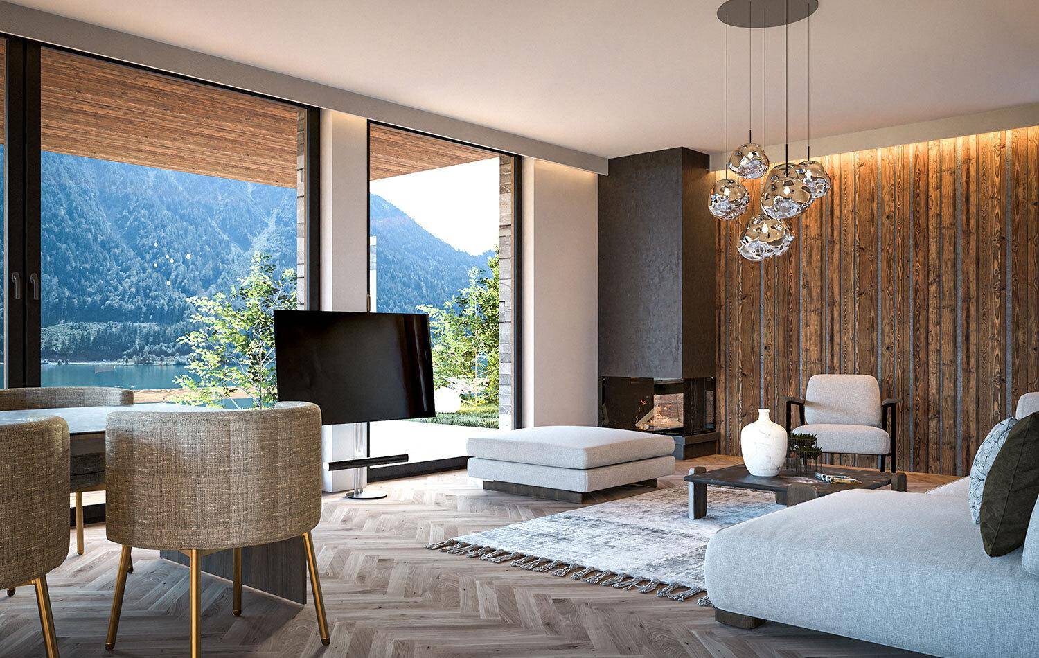 Das luxuriöse Wohnerlebnis setzt sich auch im Erdgeschoss fort. Hier erfüllen zwei weitere Schlafzimmer, ein Badezimmer und ein WC alle Ihre Ansprüche an ein exklusives Lebensgefühl. Als zusätzliches Highlight eröffnet Ihnen die Terrasse herrliche Ausblicke auf den Achensee und seine Umgebung.