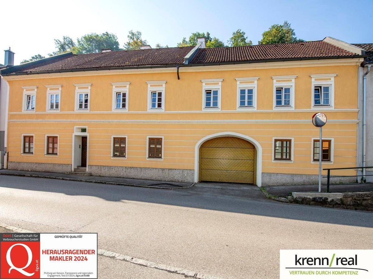 Dieses einzigartige Anwesen verbindet historischen Charme mit vielseitigen Nutzungsmöglichkeiten und bietet viel Platz zum Wohnen und Arbeiten. Trotz der Straße vor dem Haus genießen Sie im Gebäudeinneren wie auch im idyllischen Garten eine ruhige und behagliche Atmosphäre.