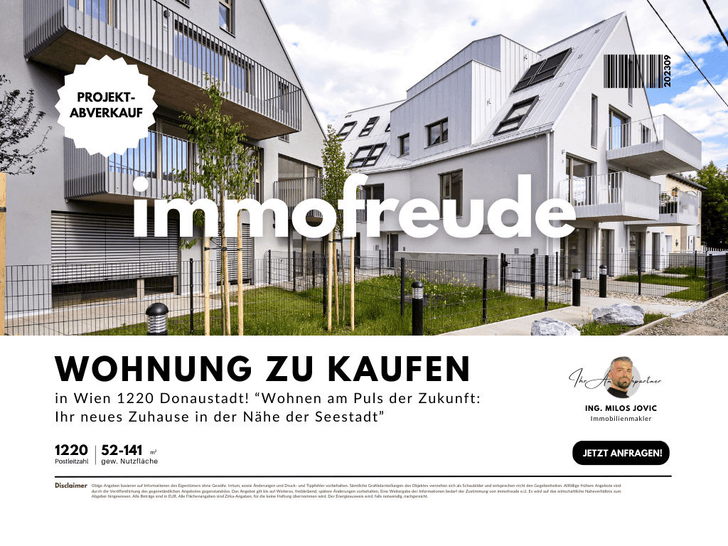 Willkommen im neuen Wohnprojekt in 1220 Wien, Lehenstraße 12, wo modernes Wohnen, hochwertige Ausstattung und Nachhaltigkeit aufeinandertreffen. Die Wohnungen sind bereits fertiggestellt und bezugsfertig, sodass Sie Ihr neues Zuhause in einer der aufstrebenden Lagen Wiens sofort genießen können.