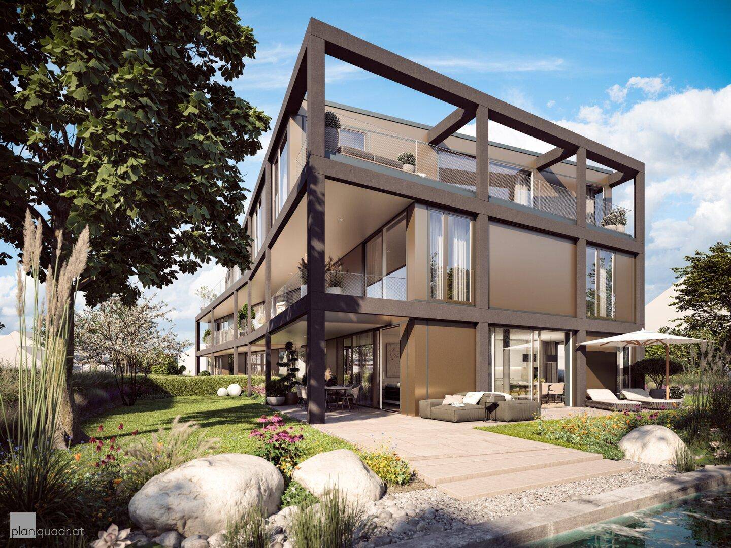 Die exklusive Wohnung im ersten Obergeschoss bietet modernen Wohnkomfort und eine wunderschöne südwestseitige Terrasse. Sie betreten den Vorraum mit Garderobe und gelangen direkt in den großzügigen und modern gestalteten Wohnraum mit offener Küche. Die angrenzende, teilüberdachte Süd-West-Terrasse bietet rund 20m2, die den Wohnraum von Frühjahr bis Herbst idyllisch nach draußen erweitern. Das geräumige Schlafzimmer mit wunderschönem, exklusiv ausgestatteten En-Suite Bad bietet Privatraum für höchste Ansprüche. Das separierte Gäste-WC und ein optimal positionierter Abstellraum sorgen für zusätzlichen Komfort.