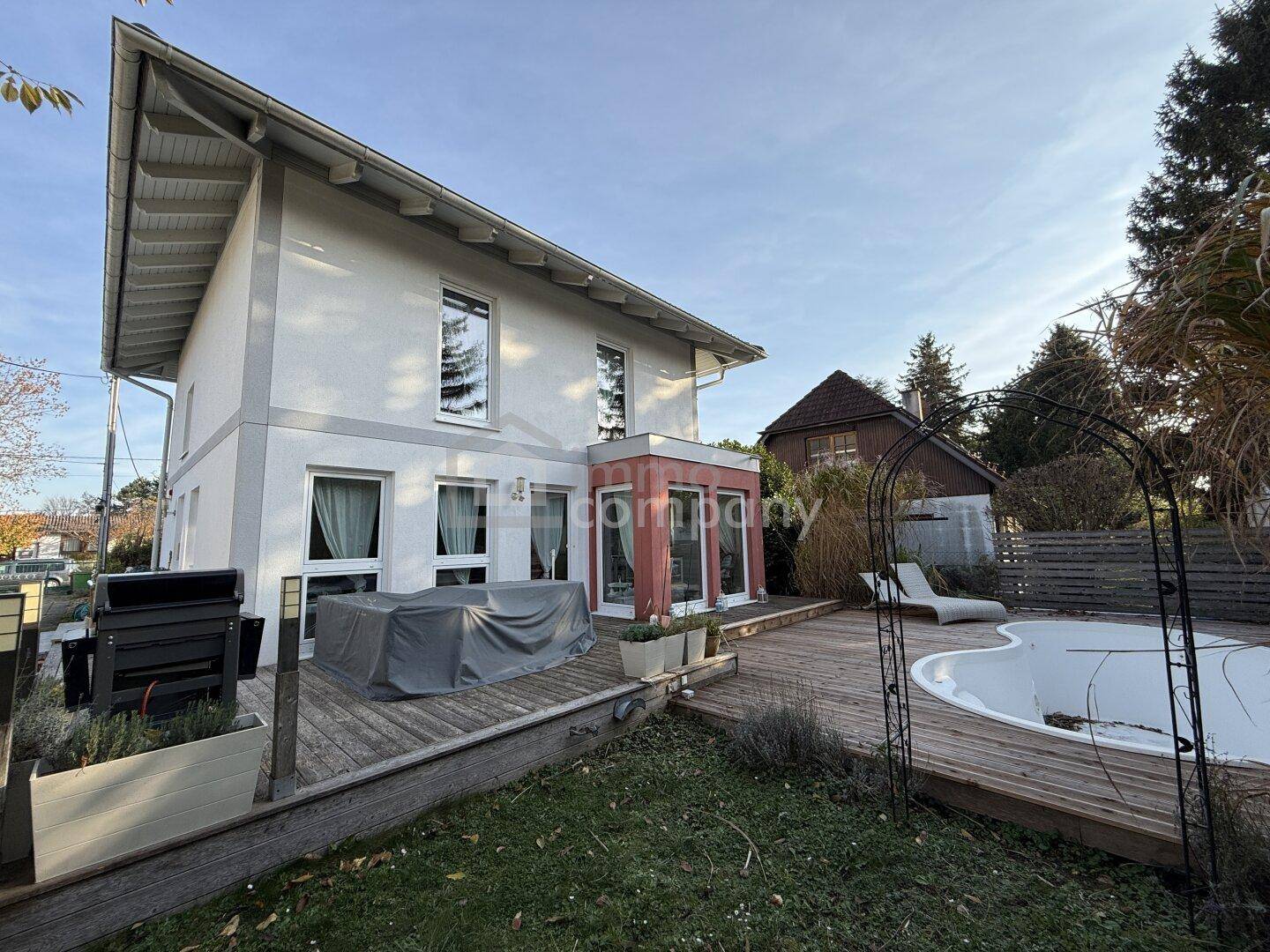 Ursprünglich stand das 1950 erbaute, jetzige Gästehaus alleine auf diesem Grundstück. Im Jahr 2007 folgte dann der Bau des Einfamilienhauses, welches mit viel Liebe zum Detail errichtet wurde! Das größere der beiden Häuser verfügt über VIER Zimmer! Drei Schlafzimmer und ein Bad stehen im OG zur Verfügung! Im EG befinden sich ein weiterer Raum, ein WC und der gemütliche Wohnbereich mit offener Einbauküche und einem tollen Kamin! Von dort aus geht es zur wunderschön gestalteten Terrasse aus Holz mit Zugang zum Pool.