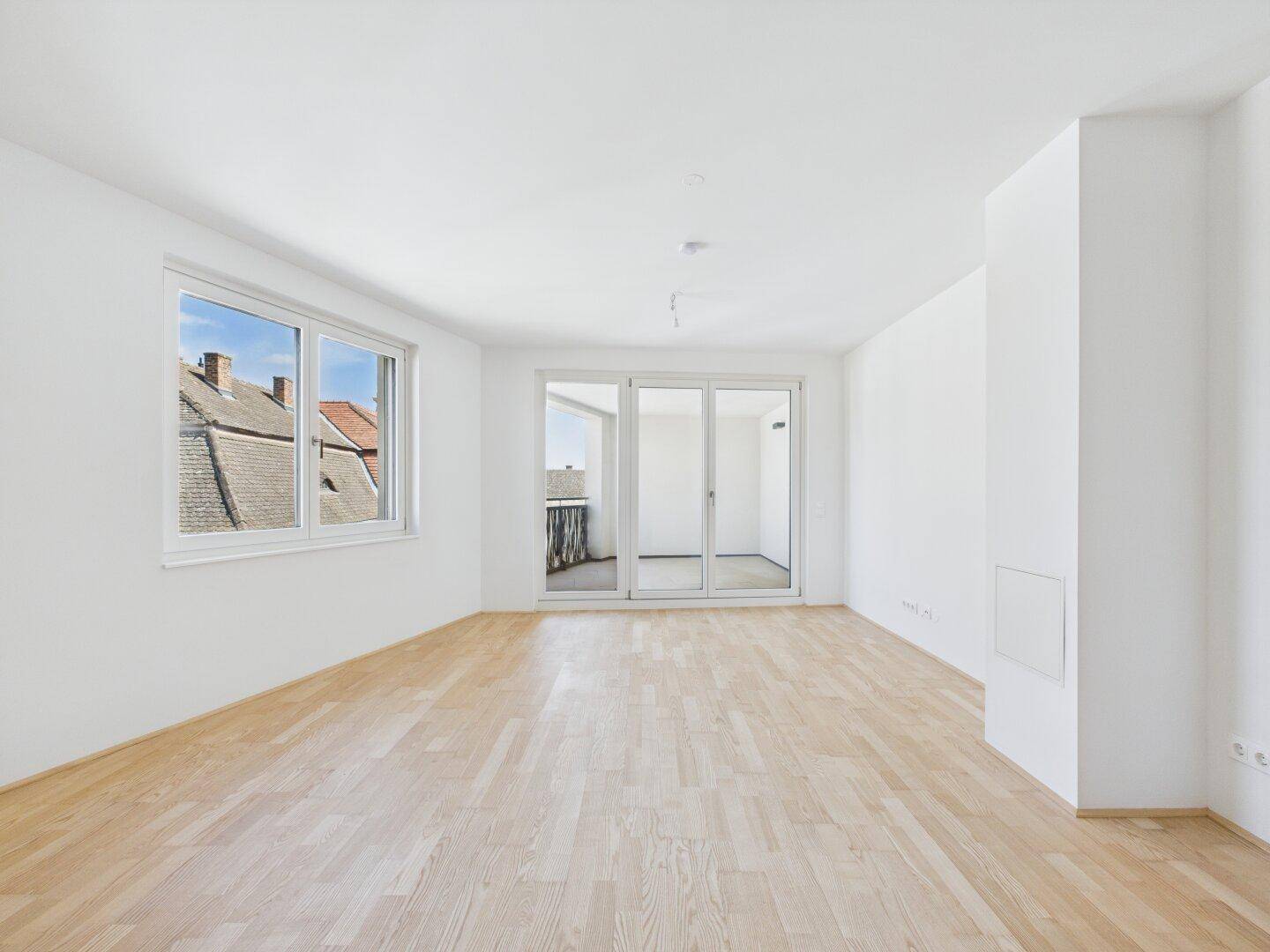 Die zum Kauf stehende Wohnung ist im 2. Liftgeschoss situiert. Die Zimmer dieser Wohnung sind alle zentral vom Vorzimmer aus begehbar und geschickt verteilt. Während man auf der rechten Seite die offene Wohnküche sowie die angrenzende, 8 m² große Loggia mit Blick auf den idyllischen Rathausplatz vorfindet, bietet Ihnen die linke Seite der Wohnung zwei Zimmer, welche sich ideal als Schlafzimmer, Kinderzimmer oder Büro eignen. Das eine der beiden Zimmer bietet außerdem Zugang zu einem kleinen, aber feinen Balkon. Das große Badezimmer ist mit einer Badewanne und einem Waschmaschinenanschluss ausgestattet. Durch das Fenster im Badezimmer wird der Eingangsbereich, welcher sich vis a vis befindet, mit Licht durchflutet. Das WC befindet sich separat. Der Abstellraum bietet einen zusätzlichen Strauraum, und kann durch die Nähe zur Küche auch ideal als Speis genutzt werden.