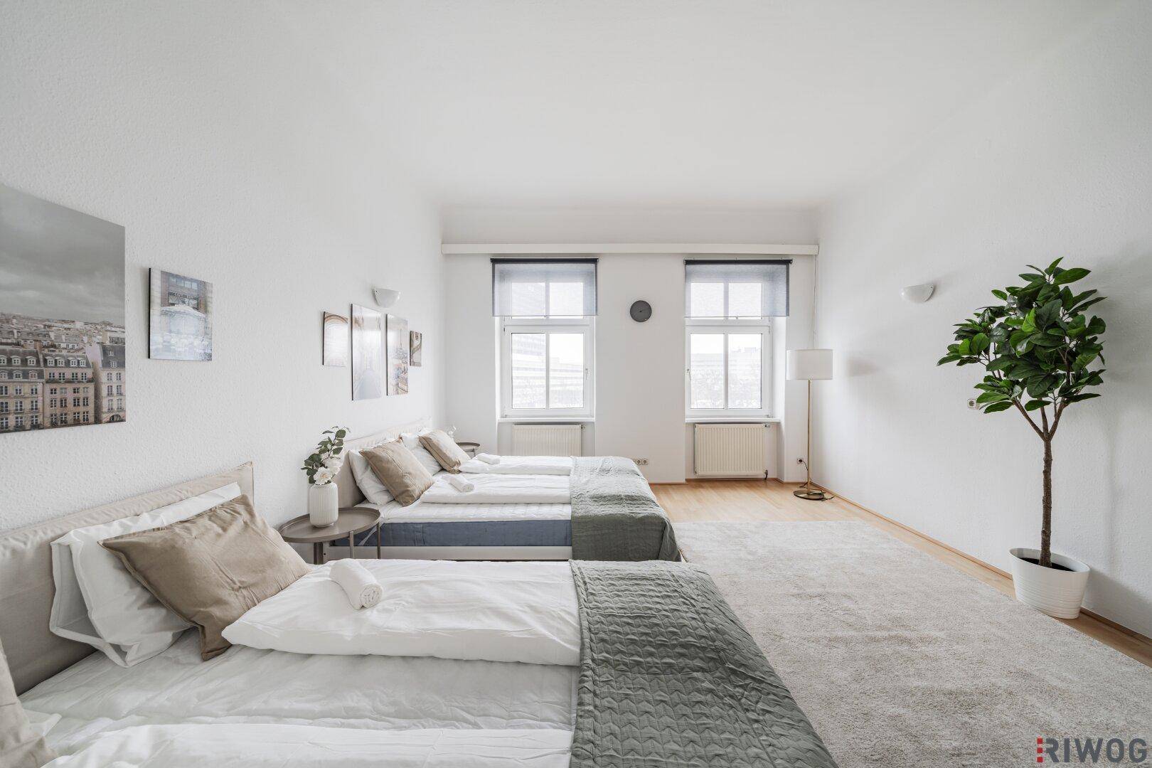 Die gepflegte Wohnung befindet sich im 3.Stock mit Lift. Helles Vorzimmer, Wohnzimmer mit 2 Doppelbetten, separater Essplatz mit Küchenzeile und Geräten sowie ein hofseitiges Schlafzimmer machen diese Wohnung durch die Möblierung sofort benutzbar sowohl für die Verwendung als Apartment zur Kurzzeitvermietung (Airbnb) oder für alle die gleich selbst einziehen möchten.
