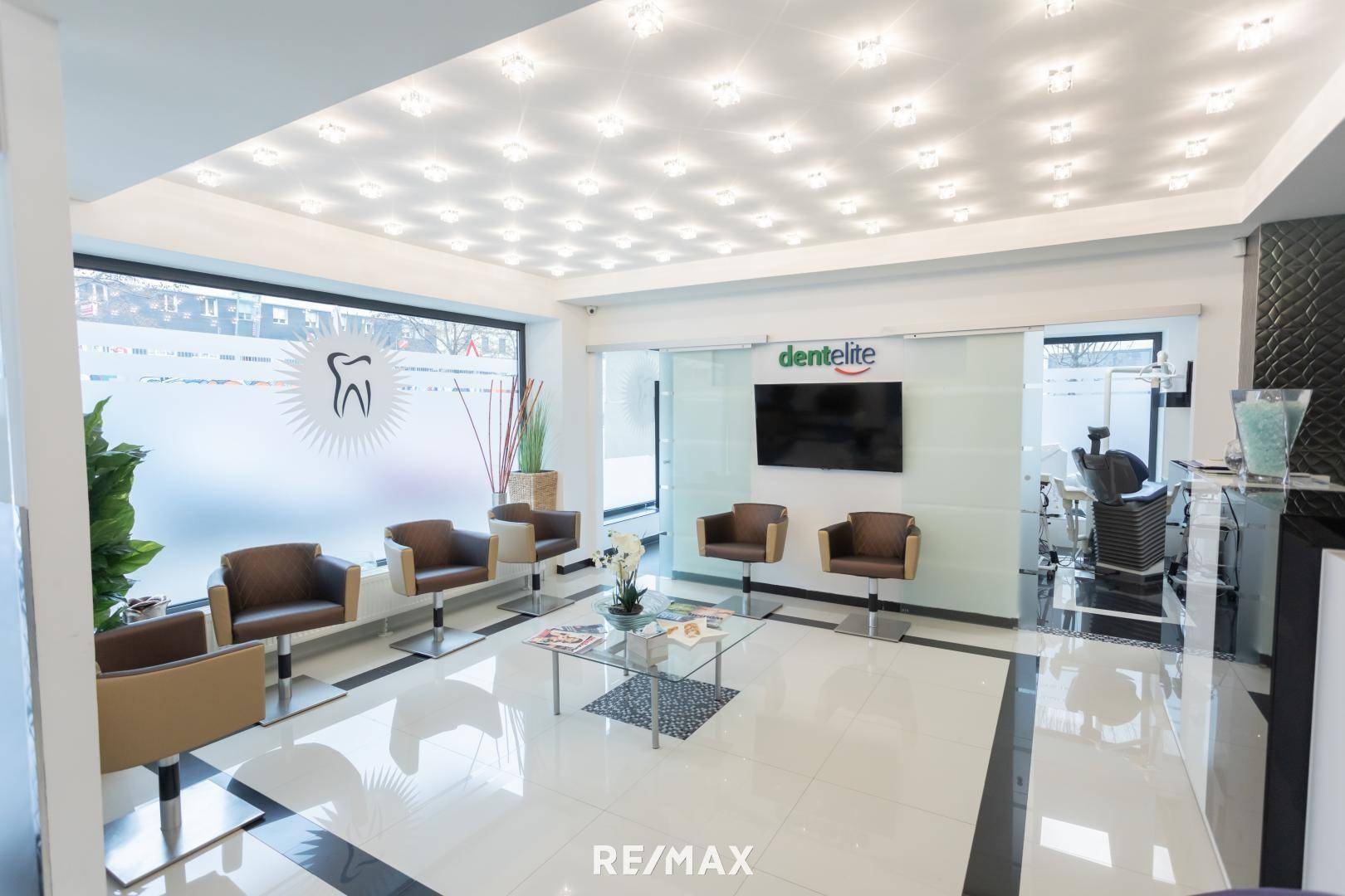 Die Rezeption ist vis a vis vom Eingang und ein geräumiger Wartebereich steht den Patienten zur Verfügung. Die notwendigen Installationen wurden genau auf den Betrieb einer Praxis im Lokal abgestimmt.
