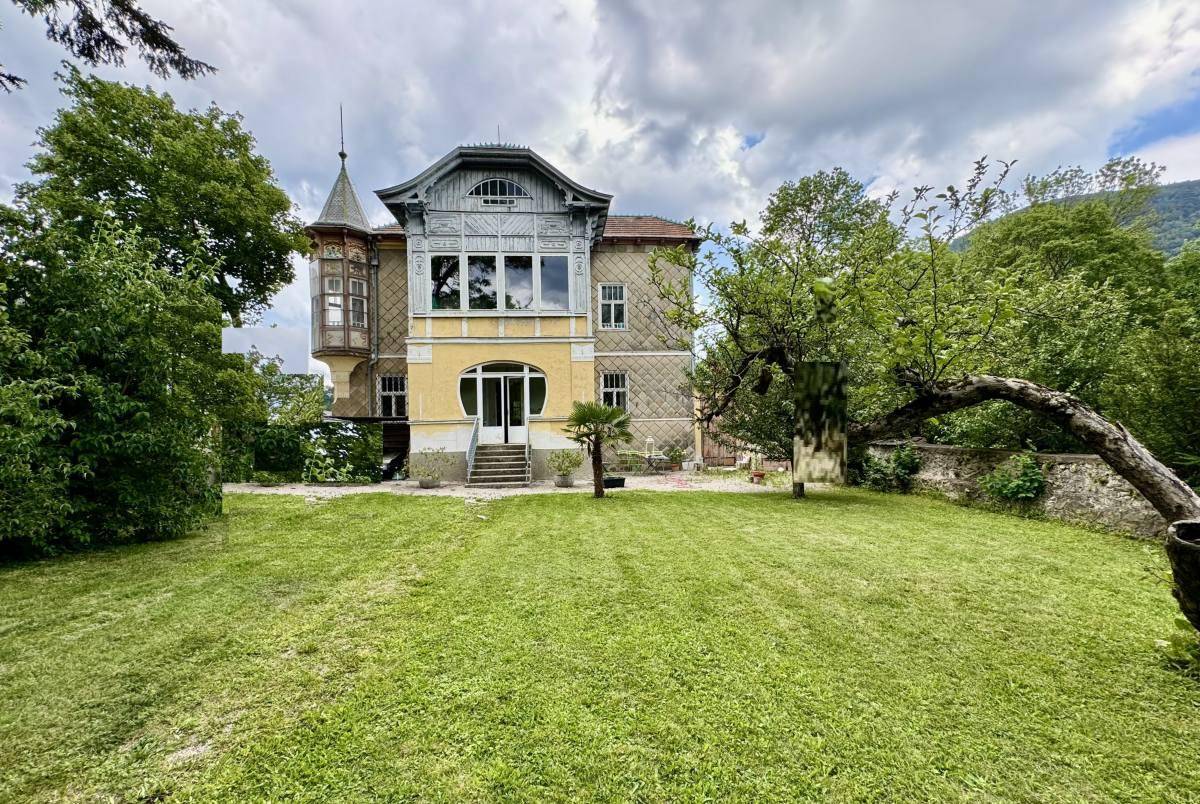 Die gesamte Liegenschaft – die Stilvilla, das Atelier mit Panoramafenster zur Triesting und die märchenhafte Holzbrücke - umgibt ein zauberhafter Hauch eines anderen Jahrhunderts. Durch die in Fresko Technik gestalteten Motive bzw. allegorischen Darstellungen auf der Straßenfassade, und die skulpturalen Symbole auf den Fassadenseiten ergibt sich das einzigartige Erscheinungsbild dieser Künstlervilla.