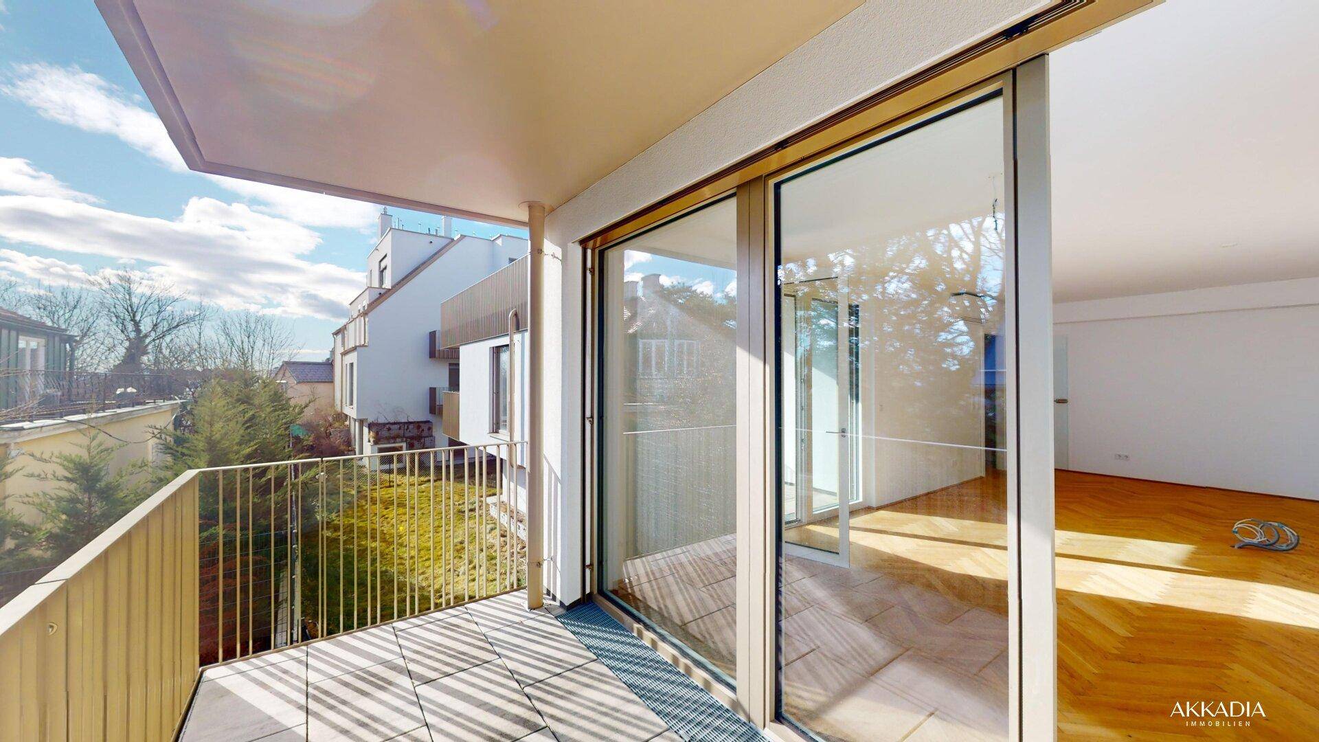 Ein besonderes Highlight sind die beiden Balkone, die vom Wohnbereich aus zugänglich sind. Von hier haben Sie einen traumhaften Grünblick – ein perfekter Ort zum Entspannen und Genießen.