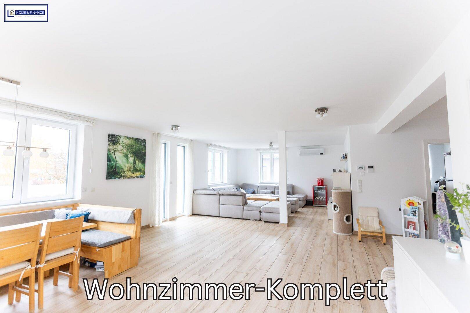 Das weitläufige Wohnzimmer mit eigenem Essbereich und direktem Zugang zur Terrasse lädt zum Verweilen ein und bietet viel Platz für gemeinsame Aktivitäten.