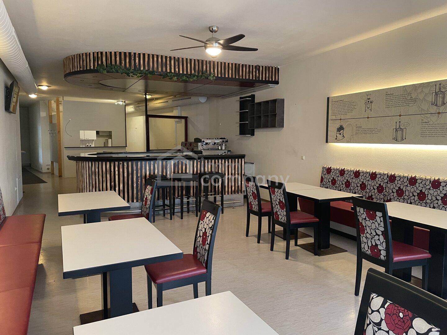 Das Lokal hat eine Gesamtnutzfläche von ca. 125 m2, ist mit einer kleinen Küche, der Theke und Sitzmöglichkeiten ausgestattet.