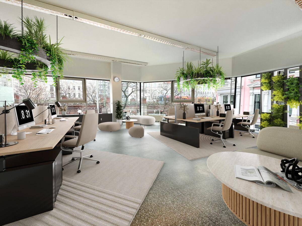 Moderne Bürofläche mit heller und lichtdurchfluteter Arbeitsatmosphäre