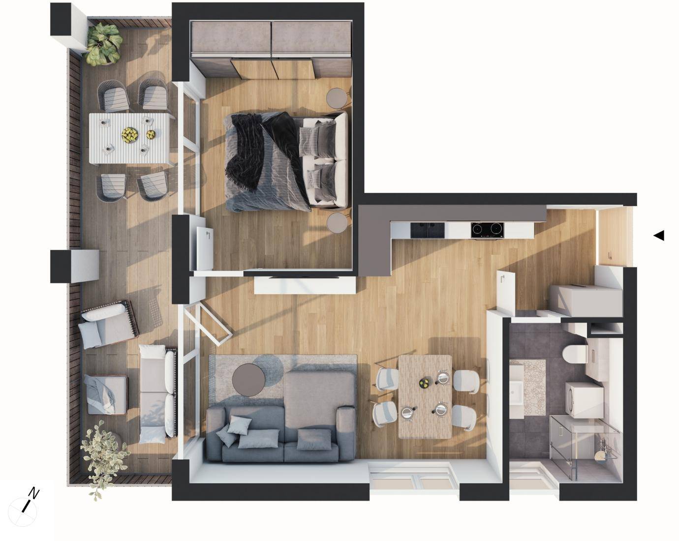 + 1- bis 4-Zimmer-Wohnungen mit kompakten Grundrissen
