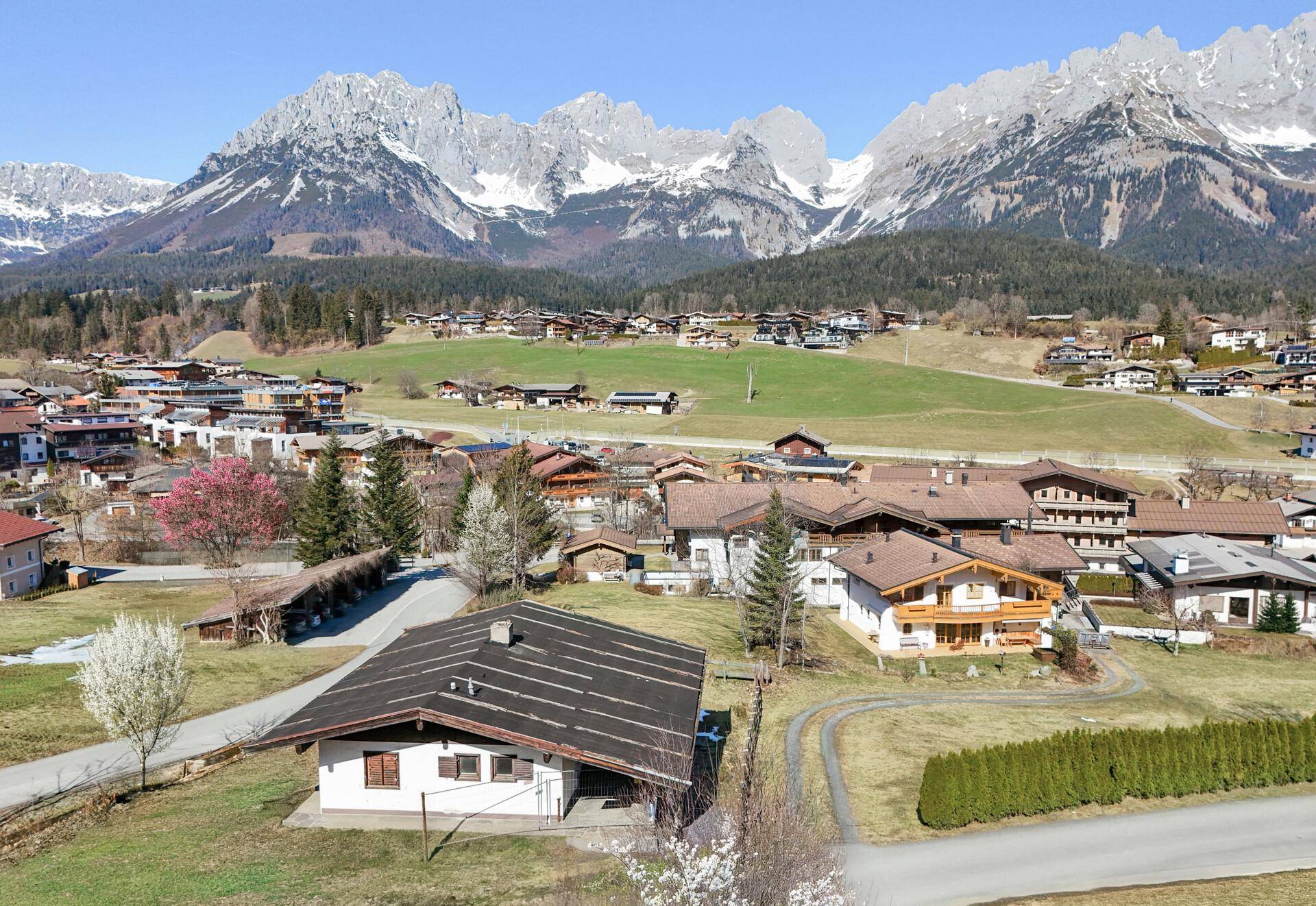 Dieses bereits baugenehmigte Landhauschalet entsteht auf einem Grundstück in leicht erhöhter Lage von Going am Wilden Kaiser und bietet einen direkten, unverbaubaren Blick auf das Kaisergebirge.