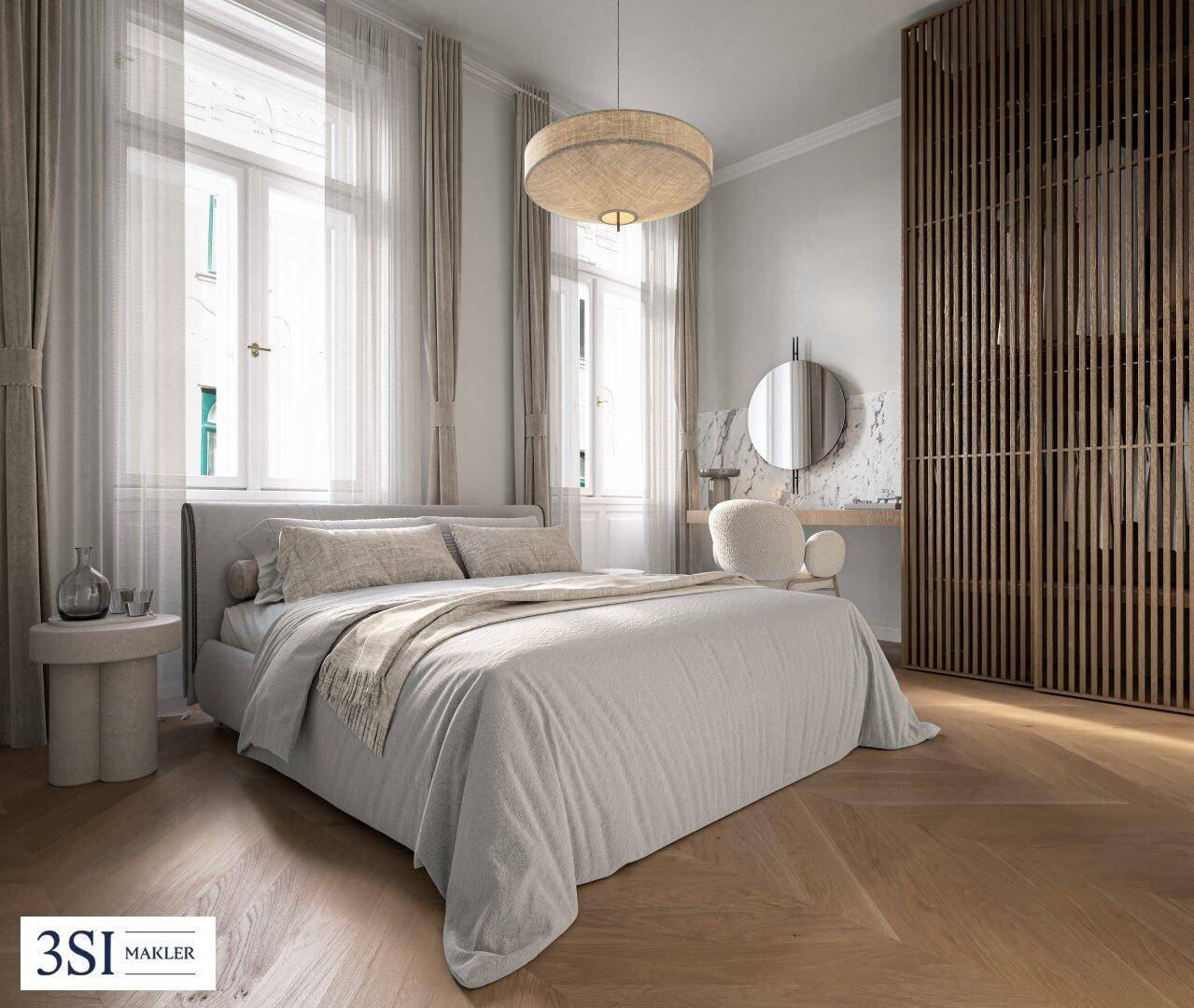 Hohe Türen und große Fensterflächen unterstreichen den klassischen Alt-Wien-Charakter, die imposanten Raumhöhen schaffen ein Gefühl von Weite und verleihen den Räumen eine außergewöhnliche Großzügigkeit. Jeweils zwei Wohnungen pro Etage verfügen über Balkone, die sich zum ruhigen, begrünten Innenhof öffnen und private Rückzugsorte inmitten der Stadt bieten.