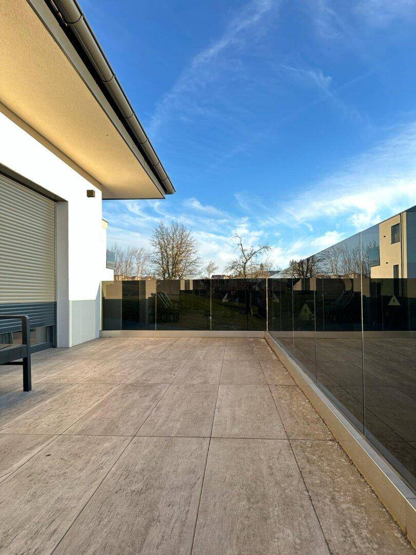 Großzügige Terrasse : Genießen Sie die warmen Sonnenstrahlen auf der Terrasse und lassen Sie den Tag bei einem Glas Wein ausklingen.