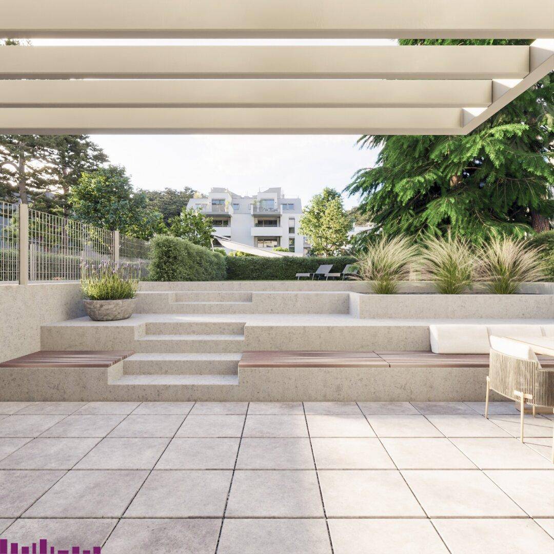 Diese hochwertig ausgestattete 3-Zimmer-Wohnung im Erdgeschoss bietet eine großzügige Wohnfläche von 92,31 m², eine optimale Raumaufteilung sowie einzigartige Freiflächen, darunter zwei Terrassen mit insgesamt 48,19 m² und ein privater Garten mit 103,59 m². Dank der Nordost-Ausrichtung genießen Sie lichtdurchflutete Räume und ein angenehmes Wohnambiente.