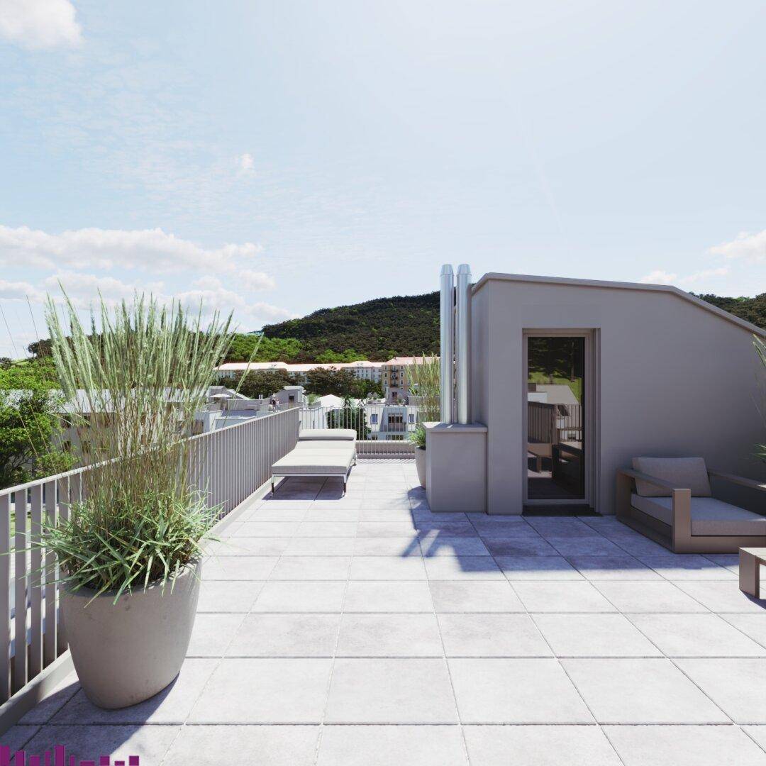 Große Dachterrasse (55,82 m²) und zwei Balkone mit insgesamt 14,26 m²