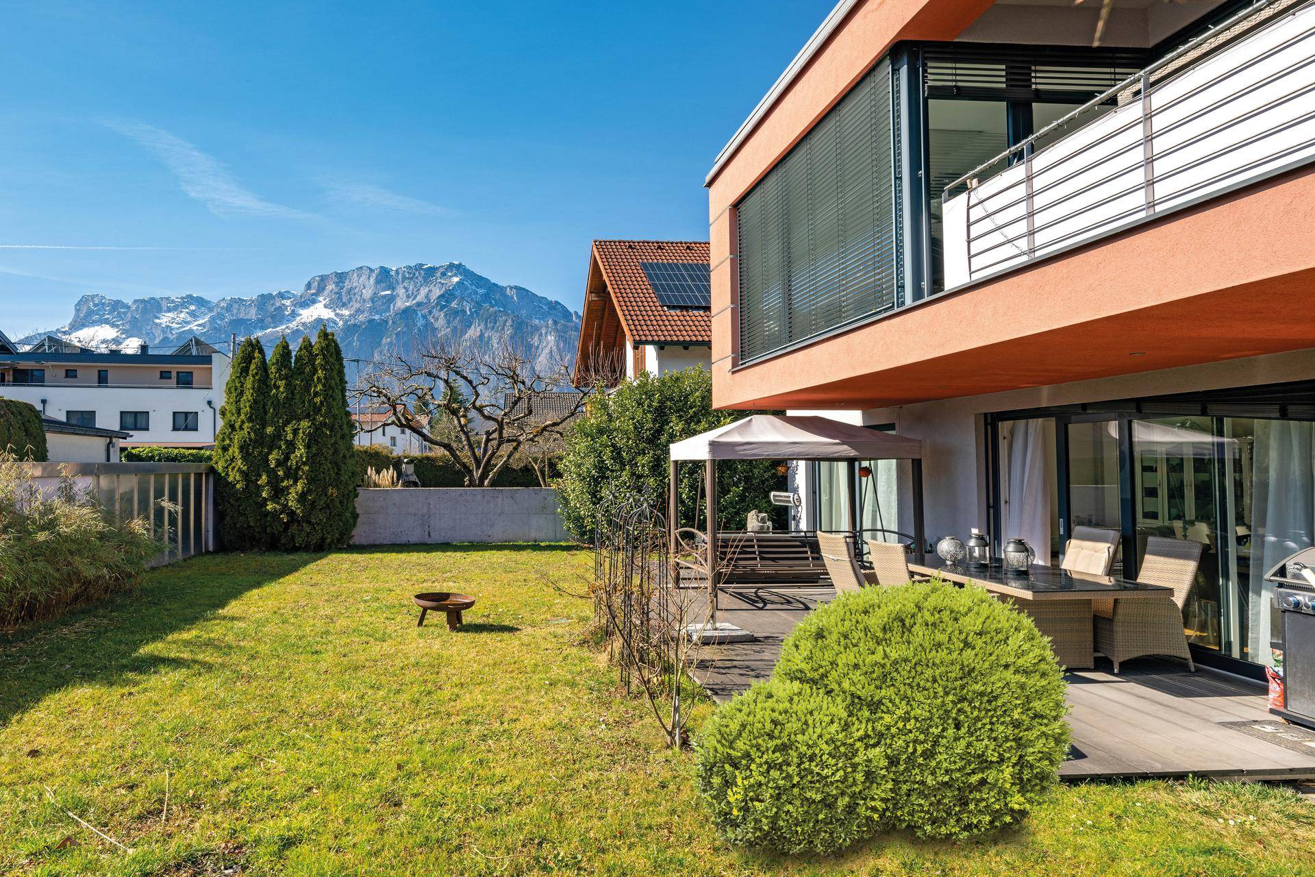 Ein schöner Garten bietet mit dem malerischen Blick auf den Untersberg Erholung pur – direkt Zuhause.
