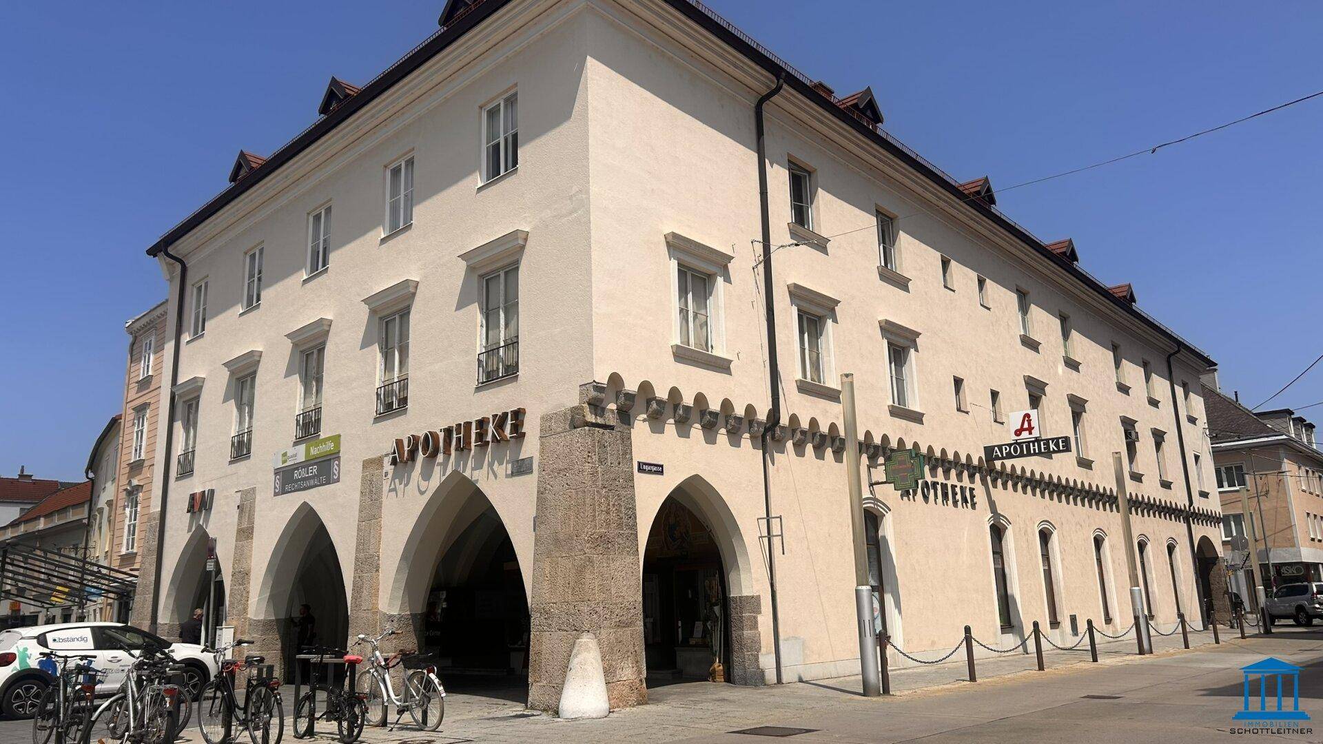 In der Ecklaube des beinahe am Hauptplatz liegenden Objektes befindet sich weiters eine kleine Vitrine, welche ebenfalls zu diesem Lokal gehört, in der man seine Produkte bzw. Dienstleistungen zusätzlich bewerben kann.