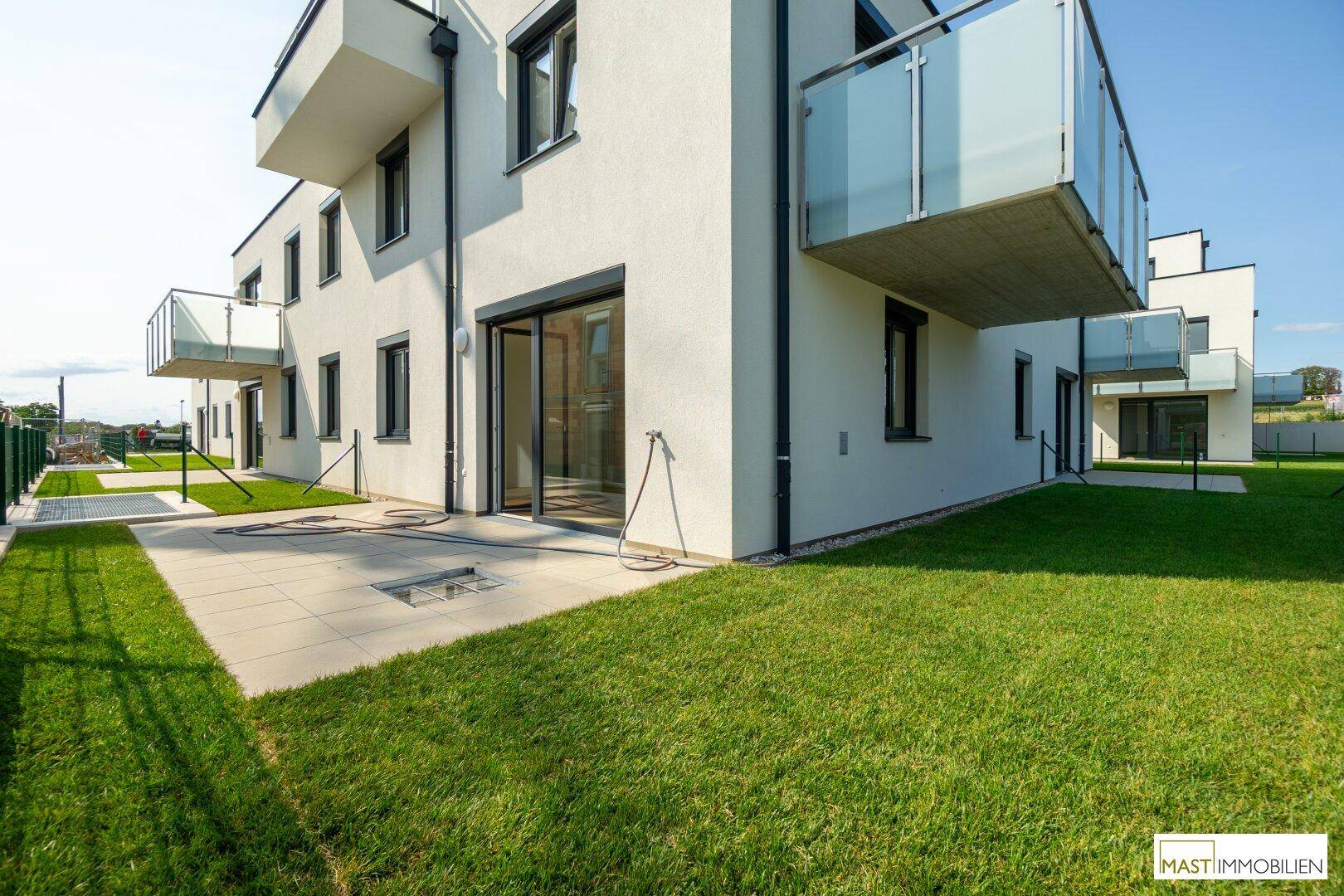 Eine wunderschöne 3 Zimmer Gartenwohnung in Ausmaß von ca. 66 m² + Eigengarten (ca. 62 m²) in südöstlicher Ausrichtung. Nach Eintritt in die Wohnung gelangen Sie in ein großzügiges Vorzimmer mit ca. 7 m². Die ca. 29 m² große Wohnküche bietet einen direkten Zugang in den Garten im Ausmaß von ca. 80 m². Beide Schlafzimmer sind ca. 11 m² groß und bieten daher ausreichend Platz für Ihre Möbel. Das modern & exklusiv gestaltete Badezimmer wird mit einer Wanne, WM-Anschluss und Waschbecken ausgestattet. Selbstverständlich ist das WC inkl. Handwaschbecken, separat begehbar.