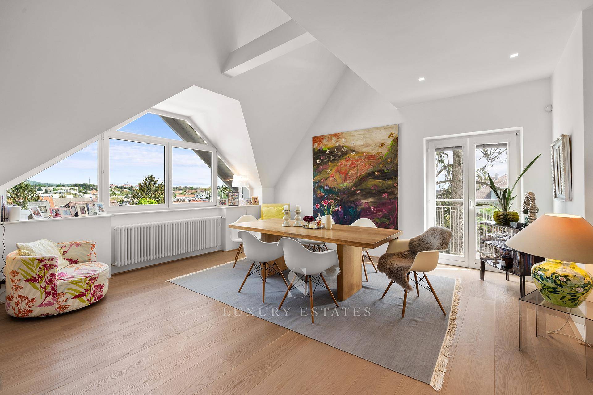 Die Aussicht von der luxuriösen Dachterrasse , als auch von dem Wohn,- Essbereich, mit Blick über Wien und bis zu den Weinbergen, bietet eine selten hohe Lebensqualität.