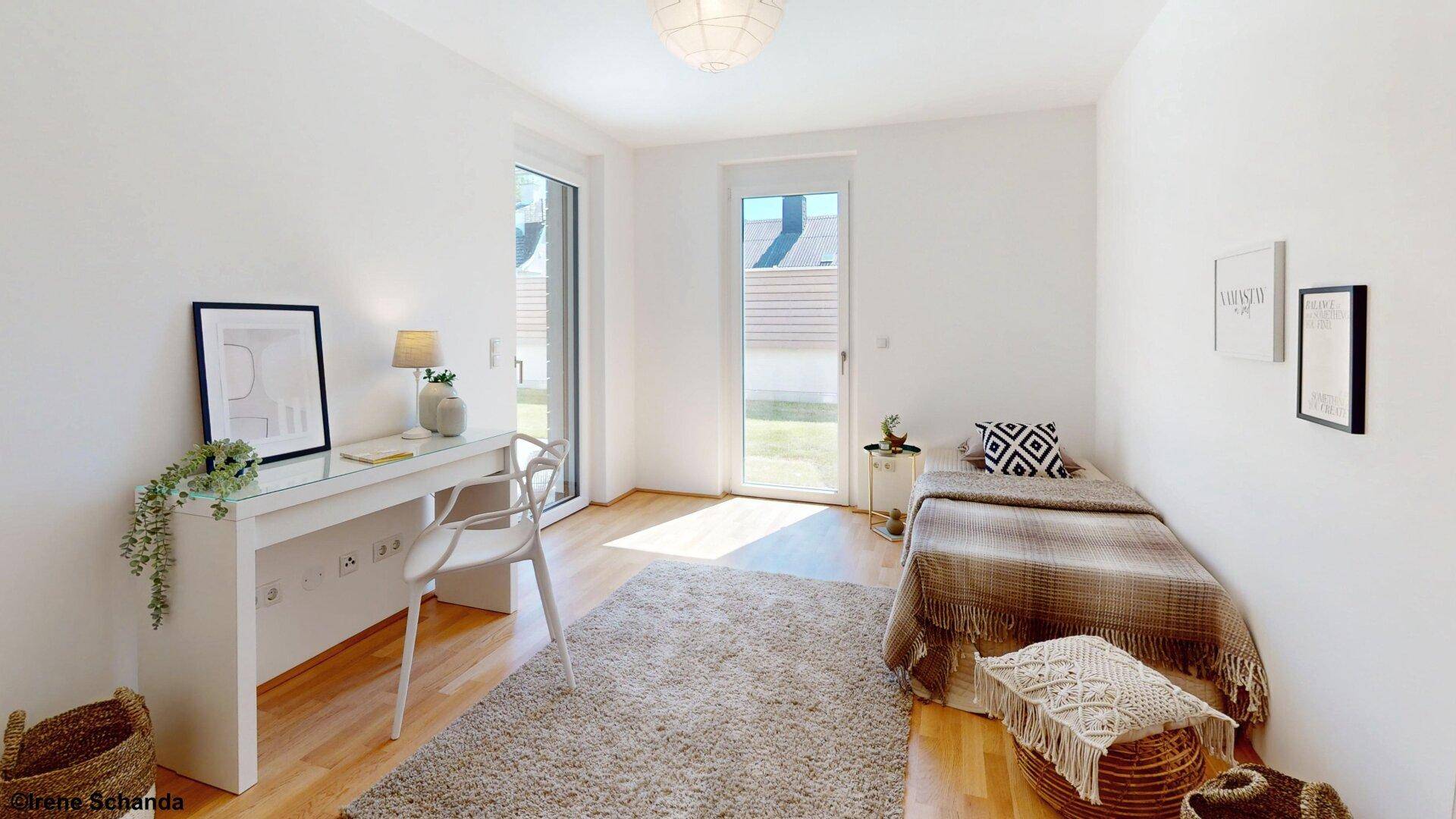 Eine getrennte Toilette und ein Abstellraum runden das Angebot ab. Durch die beiden Zimmer gelangt man in den Garten der Liegenschaft, der Wohn-Essbereich bietet einen Zugang auf die großzügige Terrasse/Loggia. Von hier aus gelangt man ebenso in den großzügigen Garten. Dieser lädt recht herzlich zu Familienfeiern ein.