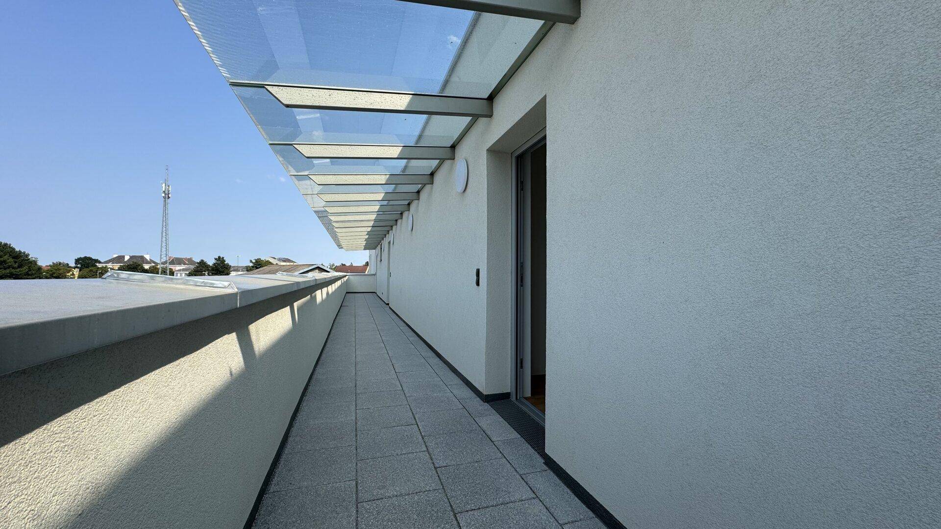Durch den Vorraum gelangt man in den Flur, dieser führt direkt zum ersten Schlafzimmer mit Ausgang auf den Balkon. Ebenso führt der Flur in das zweite Schlafzimmer mit Schrankraum. Badezimmer mit Dusche als auch WC mit Handwaschbecken sind durch den zentralen Flur ebenso begehbar. Die Wohnküche rundet das Angebot ab, man hat hier ebenso einen Zugang auf den Balkon.