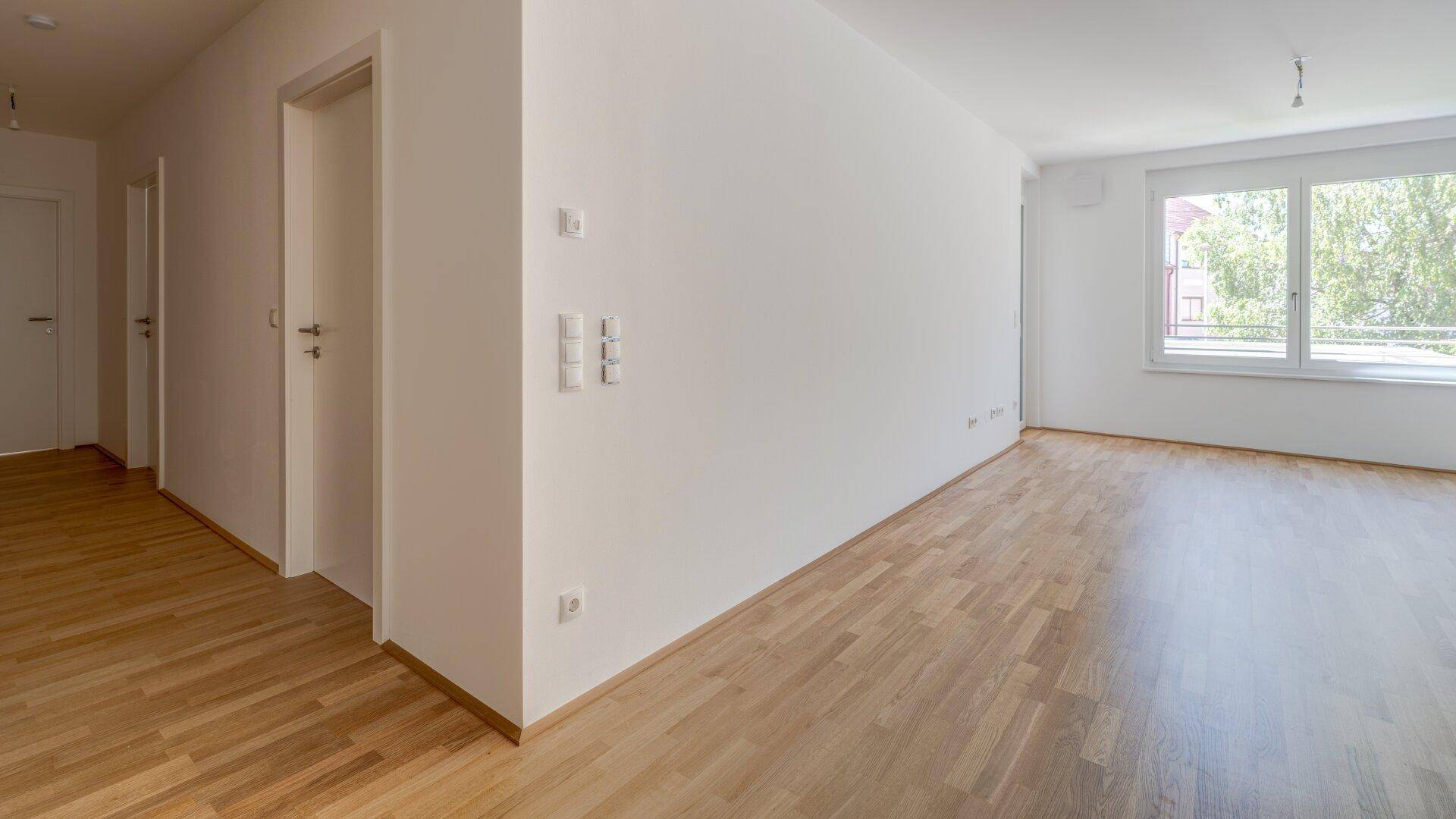 Hochwertiger Echtholzparkett, zukunftsorientierte, umweltbewusste Fernwärme sowie die Möglichkeit zur Vorbereitung der E-Tankstelle runden das Ganze ab.