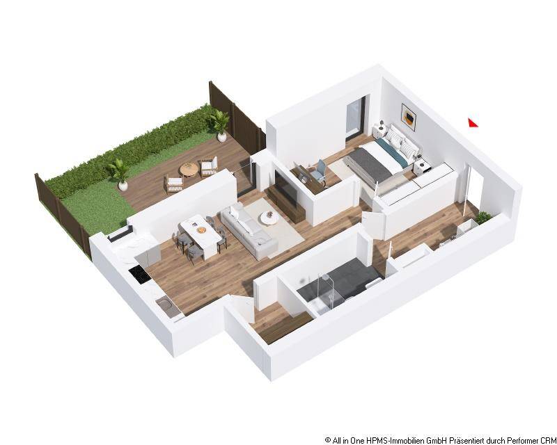 Vorankündigung 2-Zimmer-Eigentumswohnung im Erdgeschoss mit Terrasse und Eigengarten.