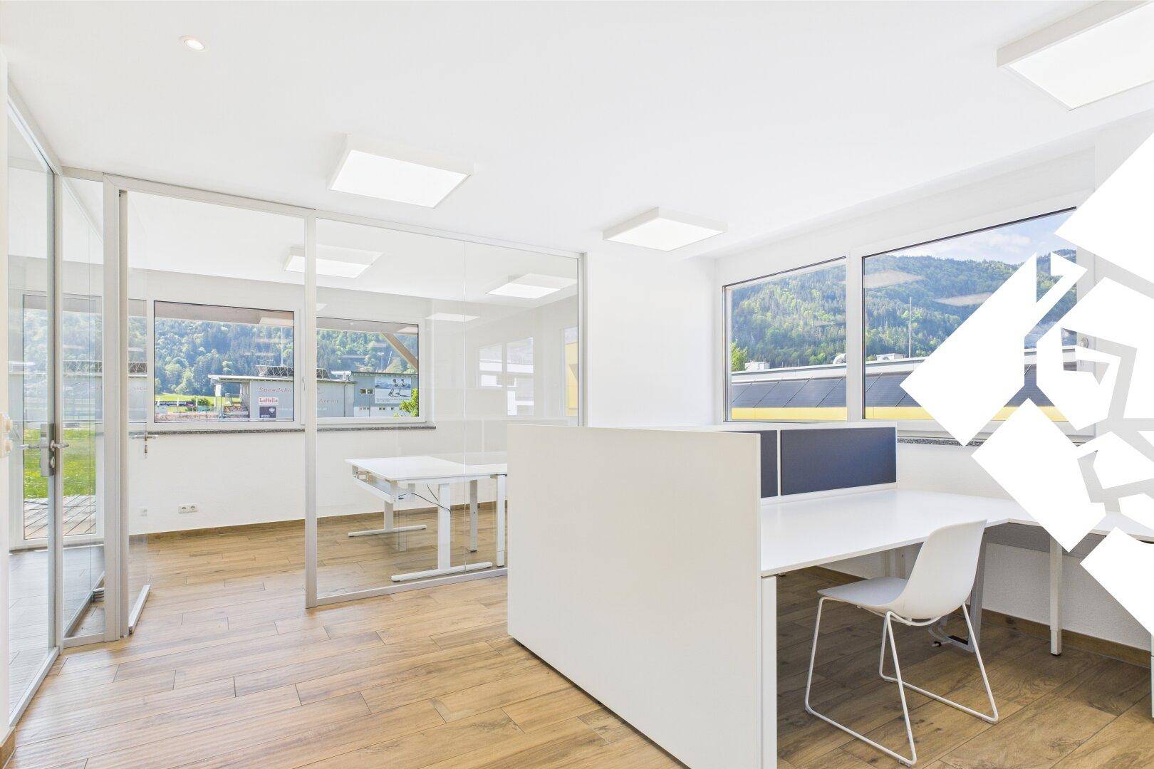 Diese moderne Bürofläche in zentraler Lage in Wörgl (Innsbruckerstraße 28) bietet Ihnen alles, was Sie für einen Geschäftsbetrieb benötigen. Die hellen Räume, die durch Glaswände voneinander getrennt sind, sorgen für eine angenehme Lichtdurchflutung im gesamten Büro. Die durchdachte Ausstattung schafft ideale Bedingungen für komfortables Arbeiten. Die neuwertigen Möbel können gerne übernommen werden. Zudem hat diese Büroeinheit neben einer kleinen Küche und einem WC auch eine großzügige Terrasse mit Südwest-Ausrichtung.