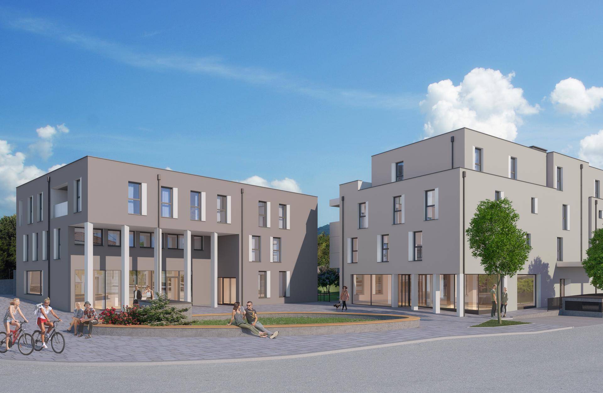 Die Anlage besteht aus drei Häusern mit insgesamt 28 Wohnungen und 5 Geschäftseinheiten, die durch eine gemeinsame Tiefgarage verbunden sind. Haus 1 und 3 werden dreigeschoßig und Haus 2 viergeschoßig ausgeführt. Das Grundstück ist nach Süden ausgerichtet. Zwischen Haus 1 und 2 wird ein Platz errichtet, der zum Verweilen animiert. Dieser Platz ist die logische Fortsetzung des Ortsplatzes, der von der Marktgemeinde Hörsching vollkommen neu gestaltet wurde.