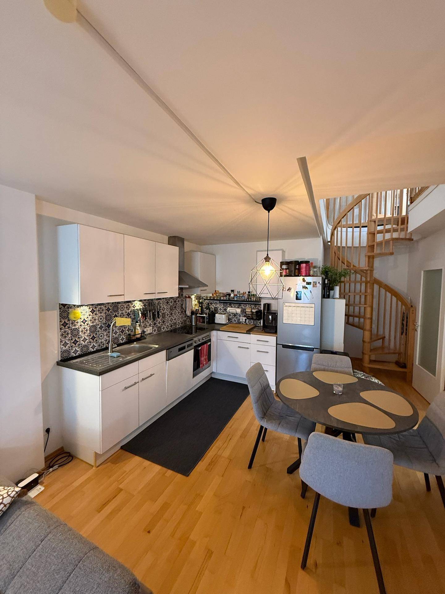 Die Wohnung verfügt über insgesamt 4 Zimmer und ein Badezimmer mit Badewanne sowie ein separates Gäste-WC. Das 4. Zimmer ist über eine Treppe im Wohnzimmer erreichbar und kann als zweites Wohnzimmer, Partyraum oder Arbeitszimmer genutzt werden. Ein 8 m² großer Balkon der in den Innenhof zeigt bietet zusätzlichen Wohnraum im Freien. Das Katzennetz am Balkon kommt noch weg. Zur Ausstattung gehören eine Einbauküche, ein Kellerabteil sowie ein Parkplatz. Die direkte Anbindung zum Stadtzentrum ist durch die Linie 4 (Dr.-Lister-Gasse) gegeben.